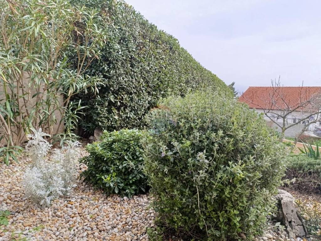Na kraju slijepe ulice s uređenom okućnicom mediteranskim biljem, blizina mora i prekrasan pogled, ova nekretnina pruža jedinstveni ugođaj i intimu.