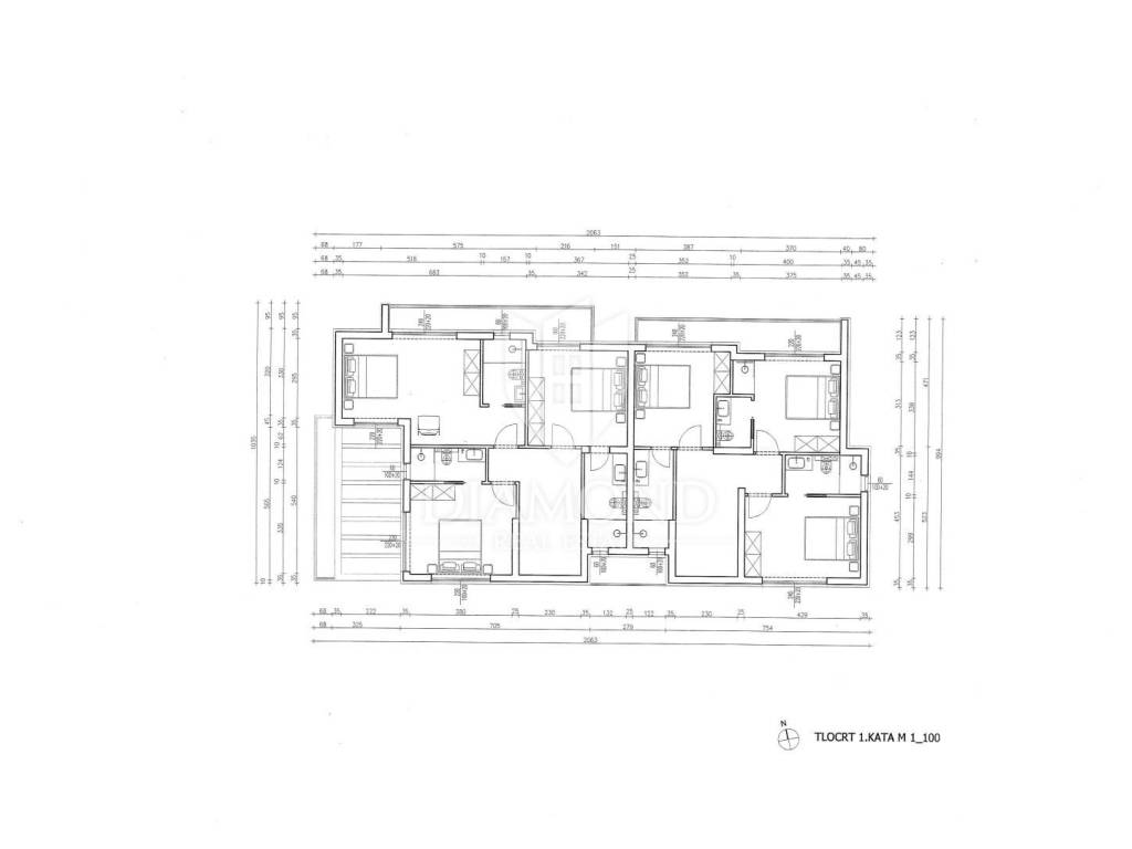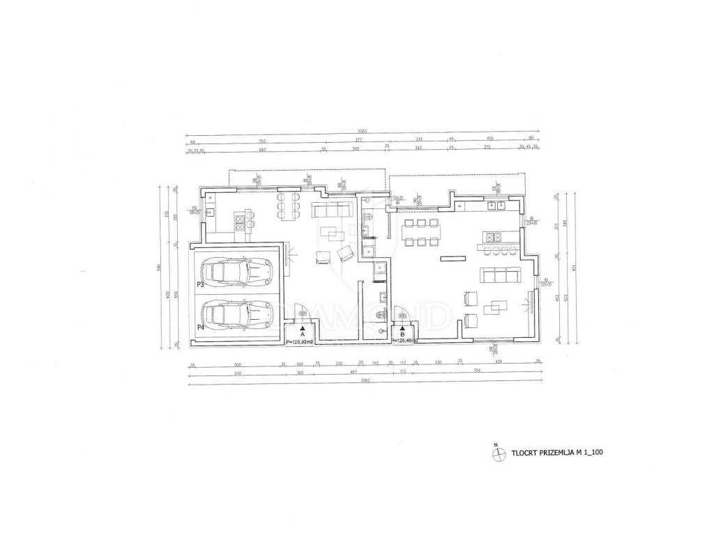 Lokacija je ono što ističe ovu parcelu koja se nalazi u mirnoj ulici na samo 200 metara od prve plaže i mora. Idejni projekt sadrži dvojnu zgradu koja u prizemlji ima otvoreni prostor (kuhinja, dnevni boravak i blagovaonica). Na katu se nalaze tri sobe svaka ima svoje kupatilo. Uz parcelu se nalazi sva infrastruktura. Parcela nudi i dva parkirna mjesta. Okolo parcele nalaze se obiteljske kuće, manje stambene zgrade i kuće za odmor.