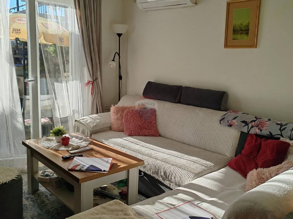 Sastoji se od kuhinje s blagavaonom, dnevnim boravkom, dvije spavaće sobe, kupaone, hodnika, dvorišta i terase s koje se pruža predivan pogled na more.