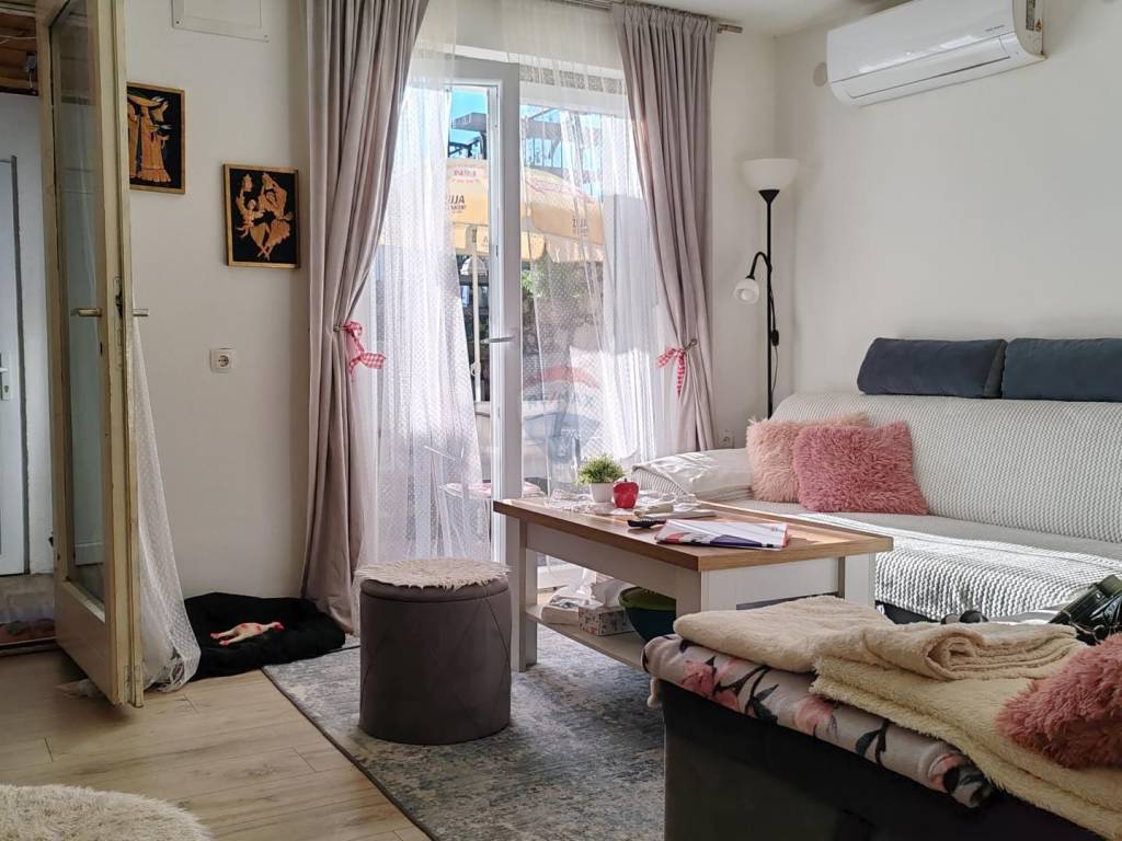 Kuća se nalazi iznad glavne ceste, u mirnoj ulici te je udaljena 800 m od plaže Kačjak.