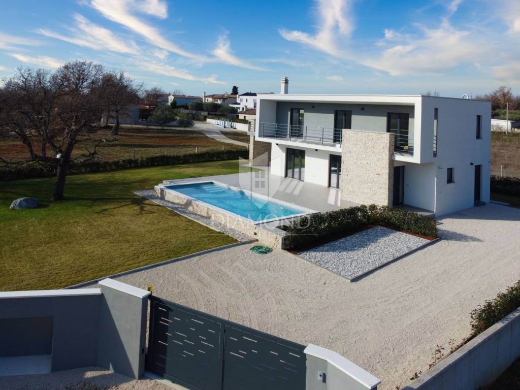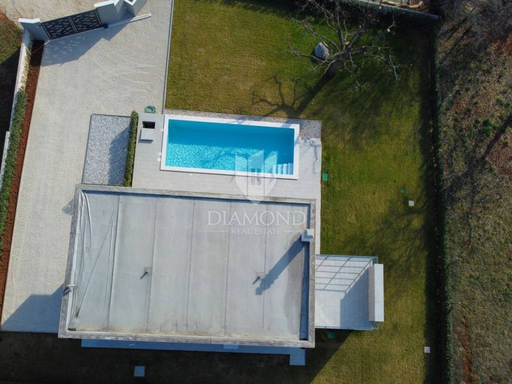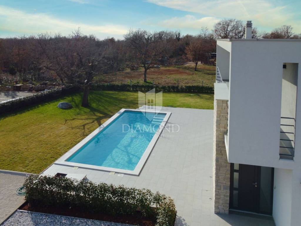 Nekoliko minuta vožnje od grada Poreča, okružena zelenilom i prirodom smještena u mirnoj ulici nalazi se ova predivna moderna samostojeća kuća s bazenom i velikom okućnicom!