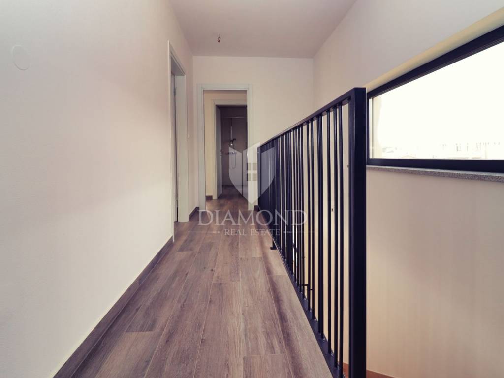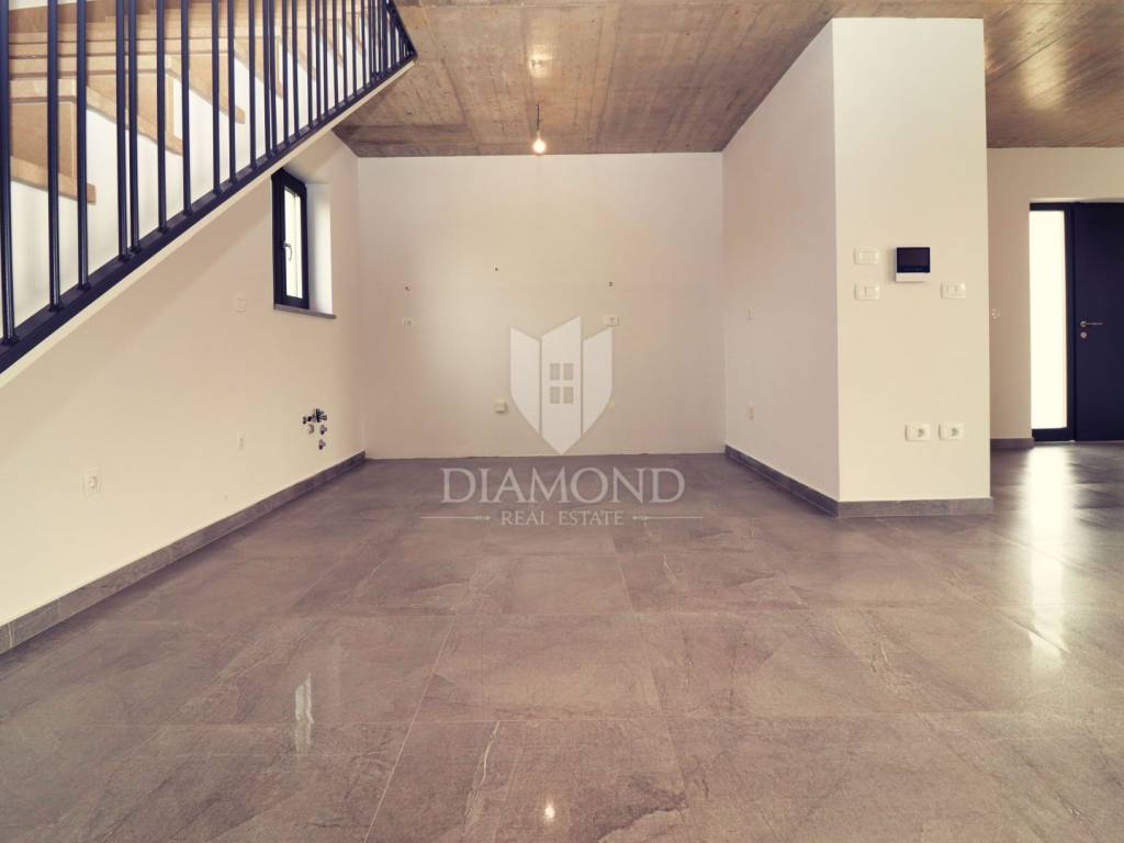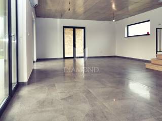 Kuća je ukupne površine 140 m2, a proteže se na dvije etaže. U prizemlju se nalazi veliki dnevni boravak sa kuhinjom i blagovaonicom otvorenog tipa, predsoblje i wc. Iz dnevnog boravka se izlazi na natkrivenu terasu s koje se pristupa na uređenu okućnicu površine 942 m2 i bazen sa sunčalištem. Proveden je sustav navodnjavanja za travnjak i živu ogradu koja obuhvaća cijelu okućnicu. Dodatno, instalacije za vodu i struju su provedene do velikog drva hrasta kako bi se mogla izgraditi ljetna kuhinja u prirodnom hladu. Katu se pristupa unutarnjim stepenicama na kojem se nalazi master spavaća soba sa zasebnom kupaonicom i prekrasnom otvorenom terasom. Na katu su još dvije prostrane spavaće sobe koje su povezane terasom te još jedna lijepa kupaonica. U svakoj sobi nalazi se klima uređaj, a u dnevnom boravku je moguće dodatno ugraditi kamin. Postavljena je prva faza podnog grijanja i instalacija za solarno grijanje na krovu kako bi u buducnosti mogli imati sustav učinkovitog grijanja niske energetske potrošnje. Kuća je nenamještena što pruža novim vlasnicima otvorene ruke opremanja prema vlastitm željama.