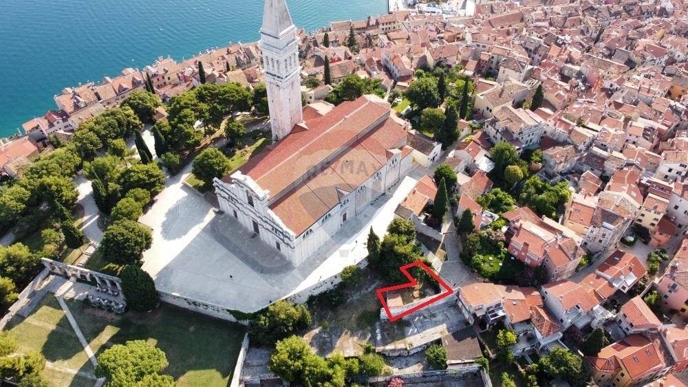 Prodajemo vrhunsku neponovljivu nekretninu na najboljoj lokaciji u Gradu Rovinju. Radi se o dvije zgradbene čestice ukupne površine 144m2,a na prodaju je suvlasnički udio koji iznosi 101m2,s mogućnošću otkupa i ostalog dijela čestice. Zanimljivost ove nekretnine je njezina lokacija: Smještena je ispod glavne crkve Sv.Eufemije,a jedan njezin brid direktno se spaja s ulicom Montalbano u dužini od 14m. Ova nekretnina pruža sigurno ulaganje u budućnost; jedan njezin dio sastavni je dio GUP-a budućeg hotela Rovinj,drugi dio nalazi se neposredno uz planiranu šetnicu uz gradski bedem koja će voditi iz ulice Montalbano u ulicu Sv.Križa. Zbog svoje neponovljive lokacije i mjesta nejfrekventnijeg prolaska turista predstavlja idelano mjesto za štand za prodaju suvenira ,umjetnina ili sličnih stvari.
