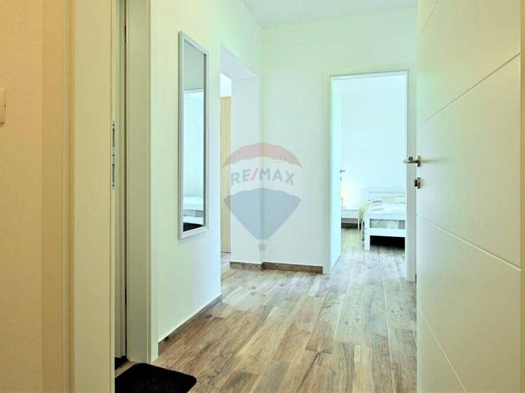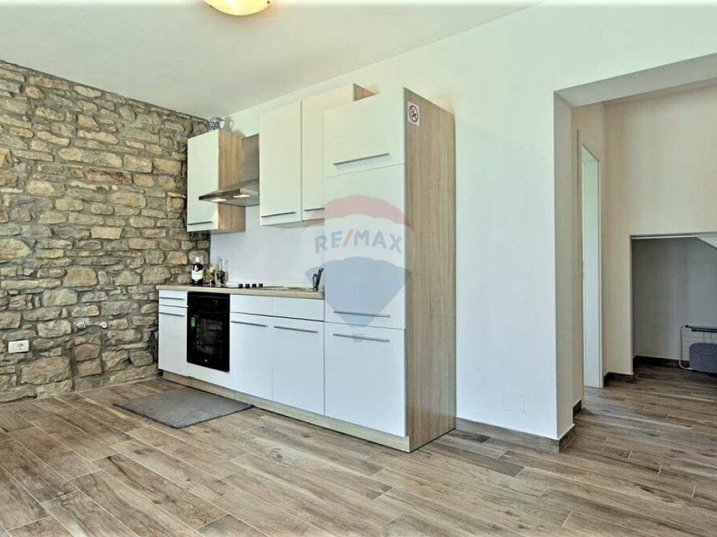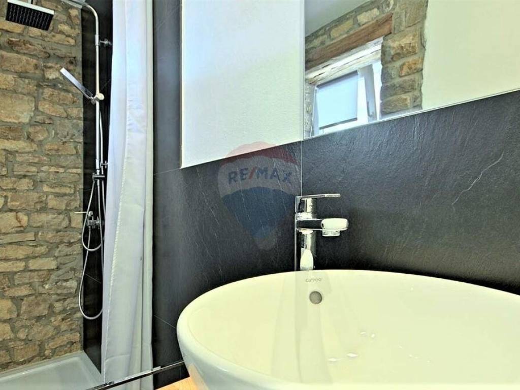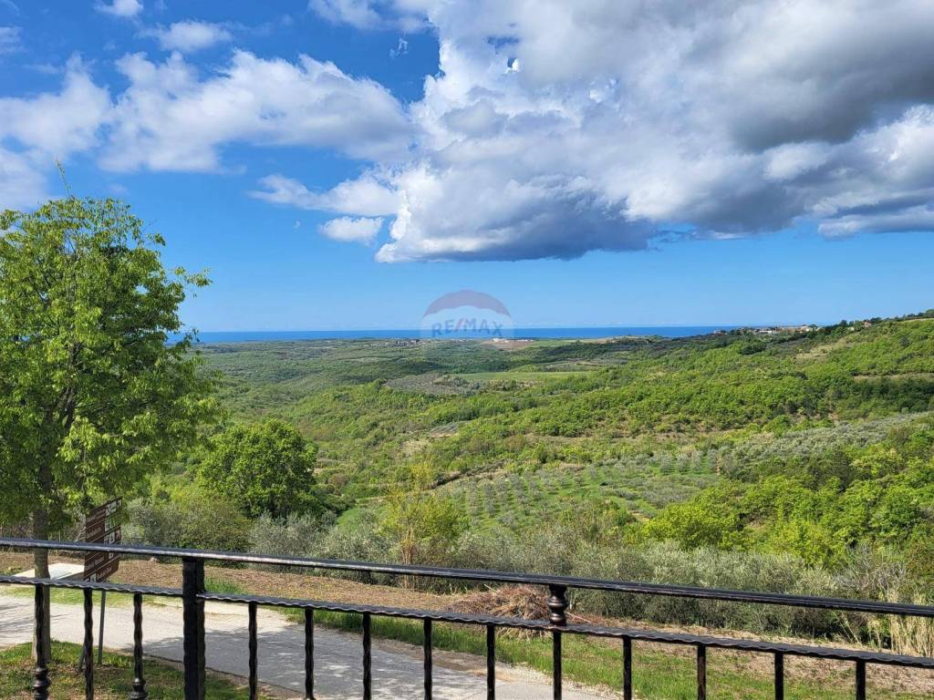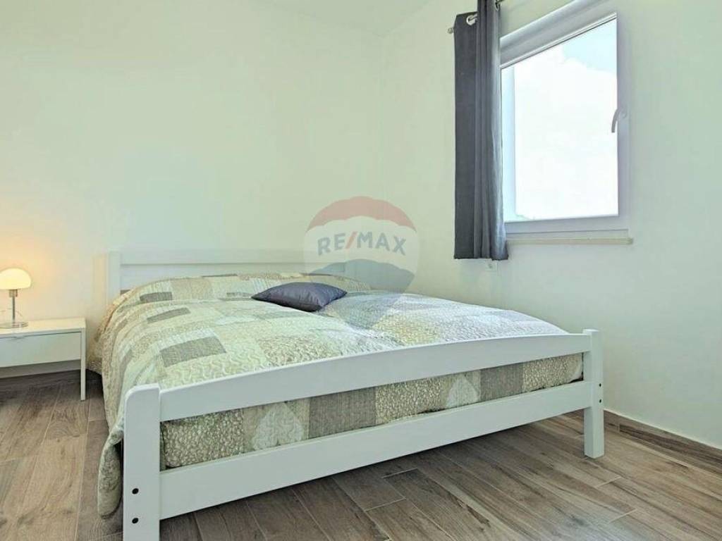 U malom mjestu nedaleko Buja, poznatom po maslinarstvu, smjestila se ova kuća u nizu. Kuća je dijelom adaptirana 2016. godine. Koncipirana je od 3 etaže, prizemlje površine 80 m2 u roh-bau fazi, stan na prvom katu površine 71 m2 i potkrovlja površine 78 m2 također u roh-bau fazi. Stan na prvom katu kuće koncipiran je od ulaznog hodnika, dvije spavaće sobe, ostave, kupaonice i velikog open space dnevnog prostora gdje je smještena kuhinja, blagovaonica i dnevna soba. Lijepo uređeni interijer u kombinaciji s izvornim kamenom daje kući poseban šarm. Iz dnevnog prostora izlazi se na prostranu terasu s koje se pruža neponovljiv panoramski pogled na more. Kući pripada okućnica od 107 m2 na kojoj se nalaze 2 parking mjesta.