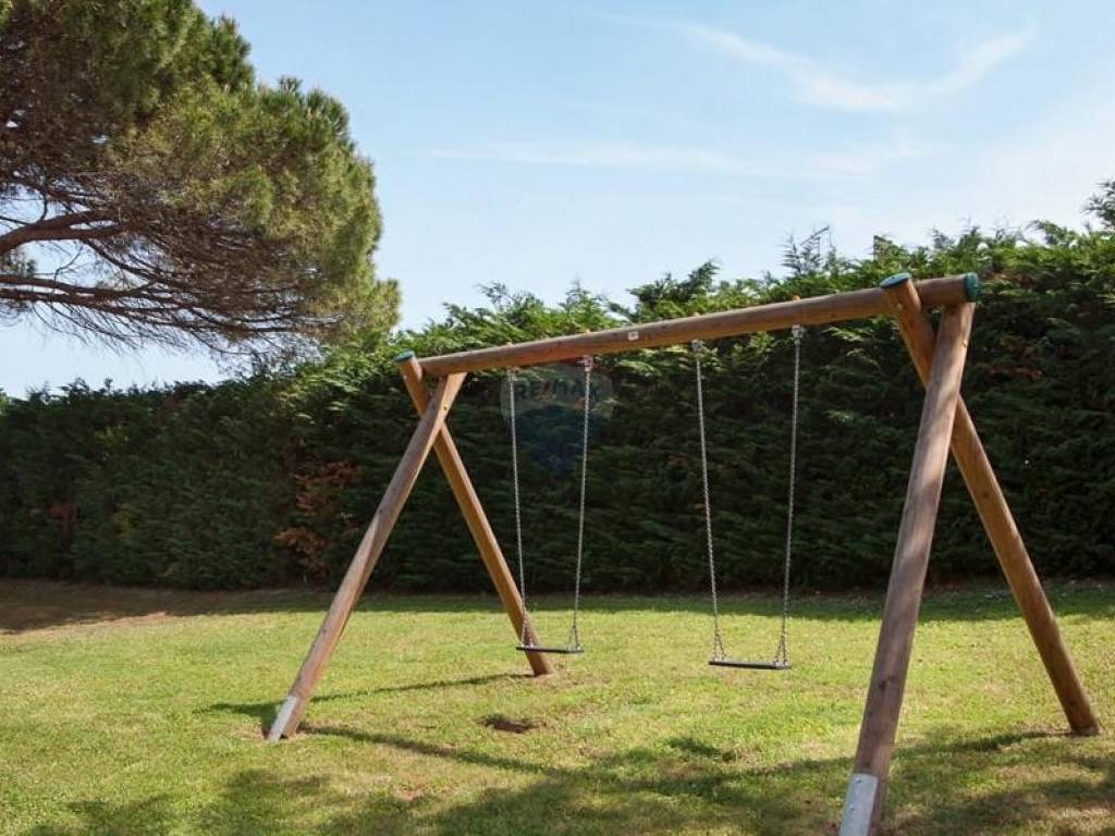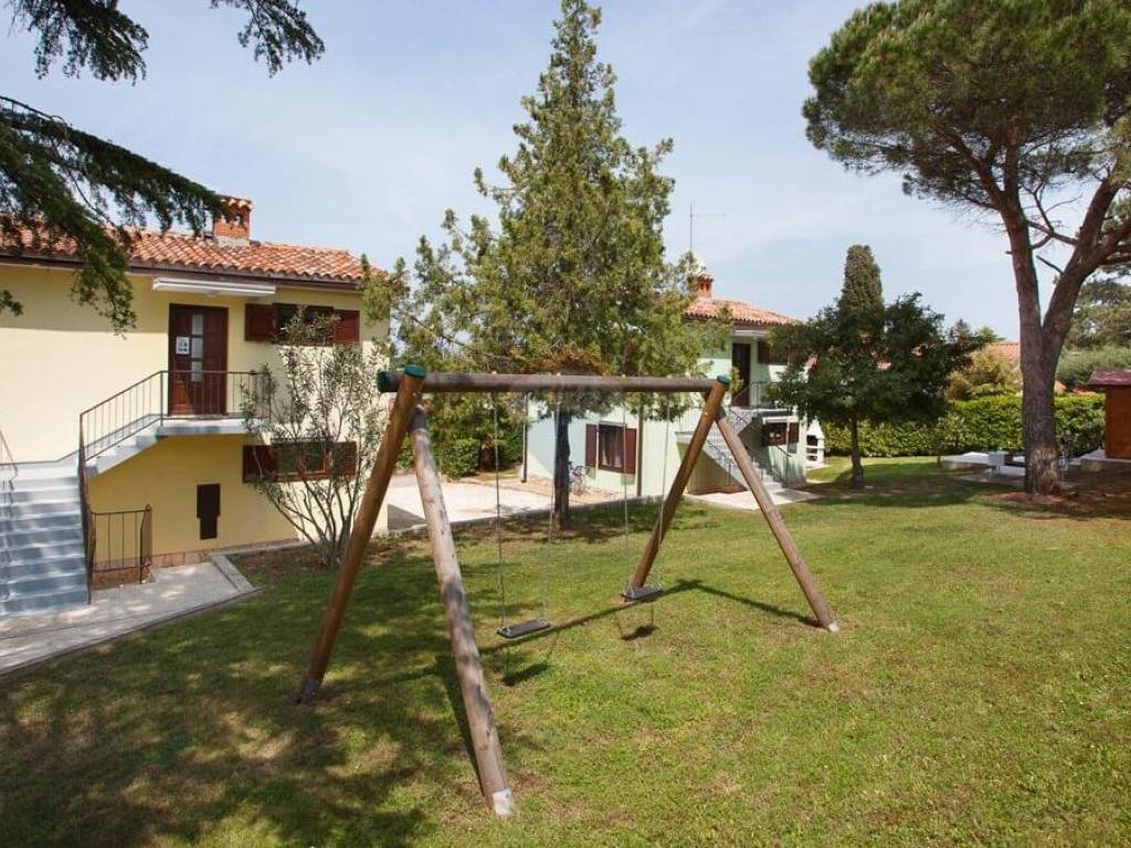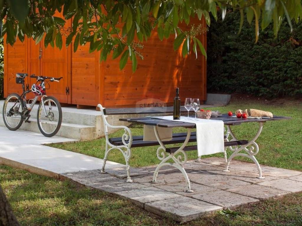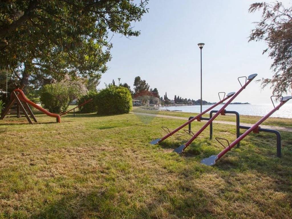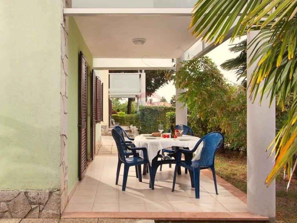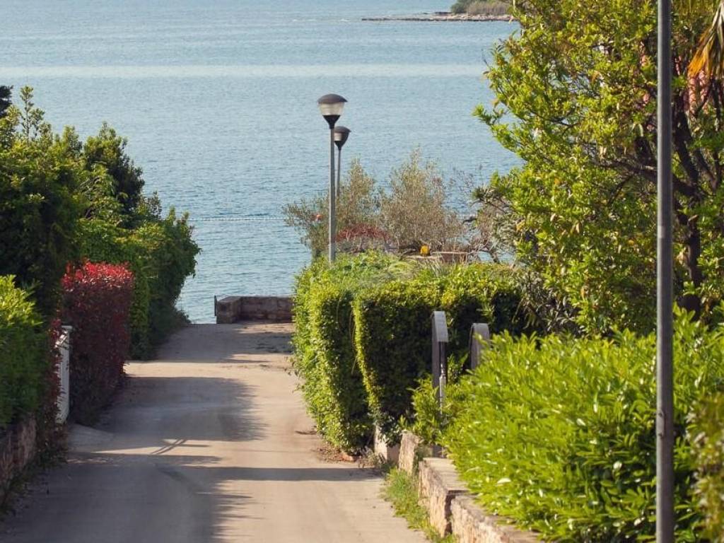 Kuća je okružena zelenilom, a njezina parcela od 369 m2 ograđena je zelenom živicom. Zbog izvanredne lokacije i blizine mora, ova nekretnina je izuzetno atraktivna za turističko iznajmljivanje, ali isto tako privlači kao miran dom za ugodan život.