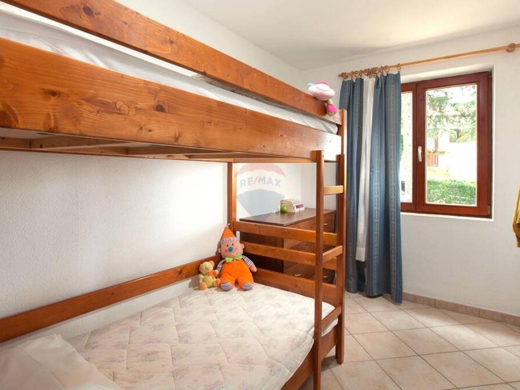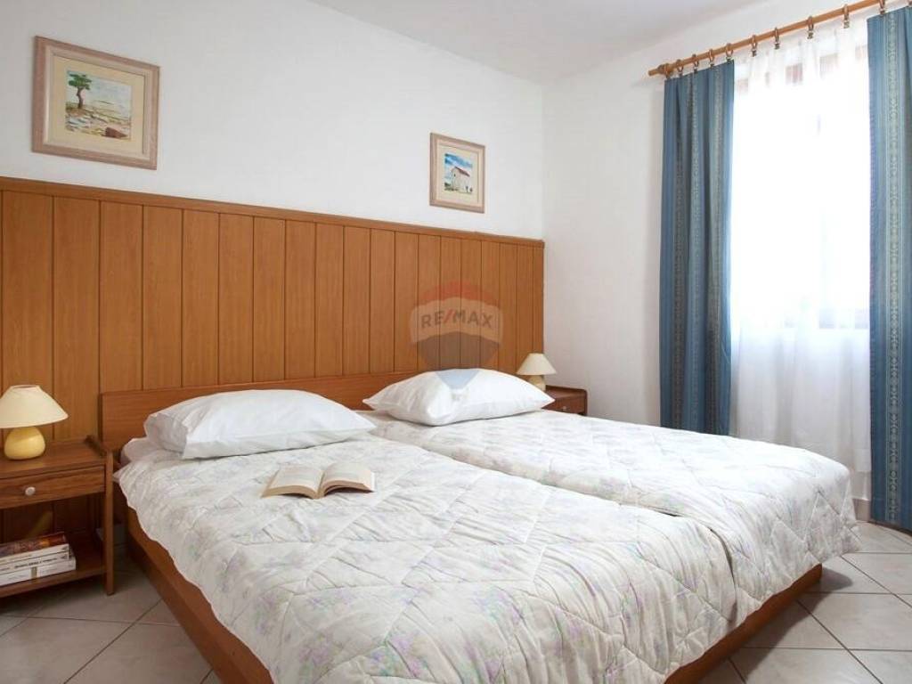 Prizemlje nudi dvije prostrane spavaće sobe, kupaonicu, prozračnu kuhinju, ugodnu blagovaonicu te primamljivu terasu. Kuća je potpuno namještena i opremljena novim terasama, klima uređajima, internetom i televizorom, pružajući svu udobnost potrebnu za savršen odmor.