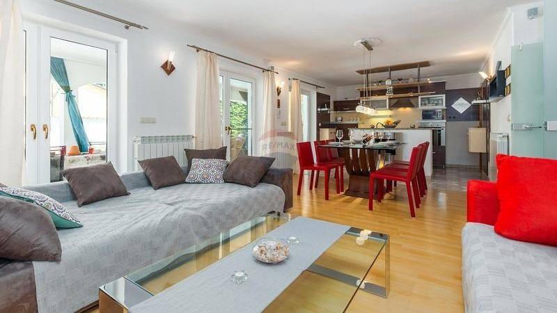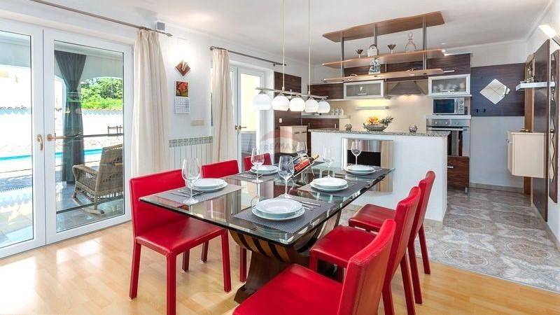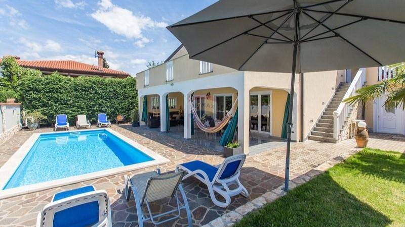 Nekretnina se prodaje potpuno namještena, pružajući novim vlasnicima mogućnost trenutnog useljenja i uživanja. Na lijepo uređenoj okućnici nalazi se prostrani bazen, sunčalište, ljetna kuhinja te veliki stol za druženje, idealni za opuštanje i zabavu na otvorenom.
