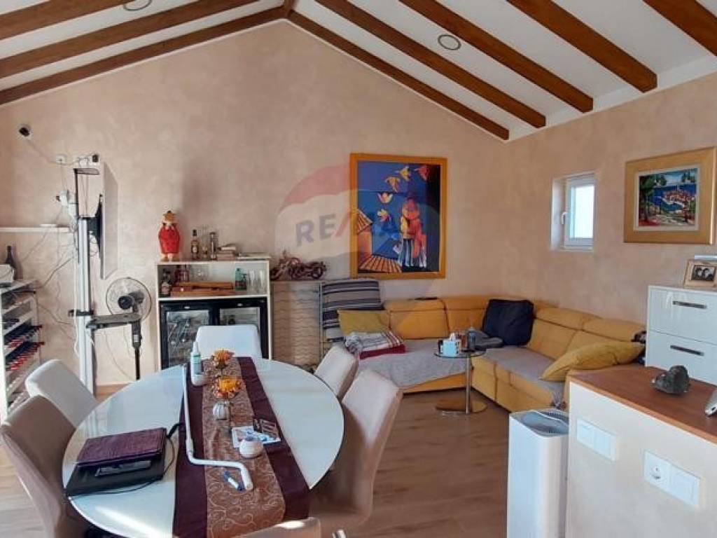 U prizemlju se nalazi kuhinja s blagovaonom, dnevni boravak, toalet i zatvorena terasa od 20 m2. Na prvom katu dvije su spavaće sobe s izlazom na balkon i kupaonica. U potkrovlju je velika soba u čitavoj tlocrtnoj površini kuće, također s izlazom na terasu s koje se pruža prekrasan pogled na more i susjedni Hvar. Kuća je sagrađena 2017. godine, a pri gradnji i uređenju korišteni su luksuzni materijali i oprema.