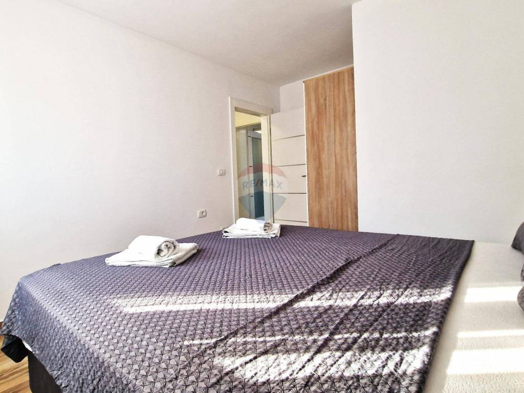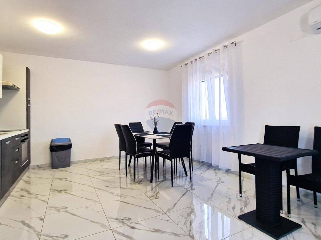 Veoma atkarktivan ,komforan i kvalitetno građen stan udaljen svega par minuta vožnje od centra grada,svih sadržaja i uređenih plaža. Stan se nalazi na prvom katu manje stambene zgrade a sastoji se od ulaznog hodnika,prostranog openspace prostora u kojemu su smješteni kuhinja s blagovaonicom i dnevni boravak sa velikim prozorima i izlazom na balkon,dvije spavaće sobe i kupoaonice. Nekretnina posjeduje vlastiti ulaz i 1 parkirno mjesto. Stan je potpuno namješten i opremljen te se takav i prodaje što ga čini izuzetno zanimljivim za iznajmljivanje u turističke svrhe,vikend boravak ili kao nekretnina za život u mirnom okruženju.