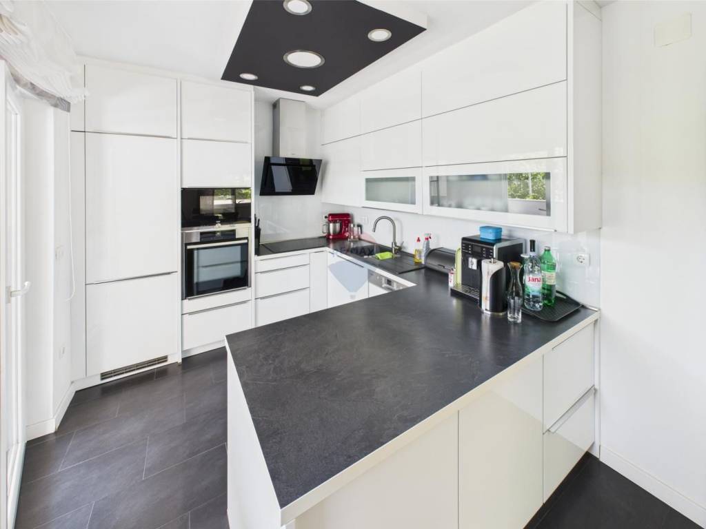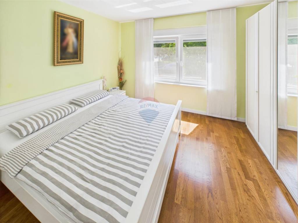 Stan u prizemlju se sastoji od ulaznog hodnika, dvije spavaće sobe, open space dnevnog boravka sa modernom kuhinjom i blagovaonom, kupaonice te dva balkona u sklopu stana se nalazi i prostrana garaža gdje bez problema se mogu parkirati dva vozila, terasa.