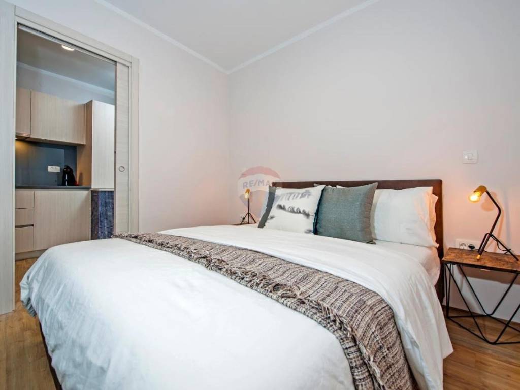 Pogled na živopisnu starogradsku jezgru i zvonik svete Eufemije daju mu posebnu čar. Budući se nalazi na trećem katu tipične zgrade ima puno svijetlosti. Spreman za život ili iznajmljivanje.
