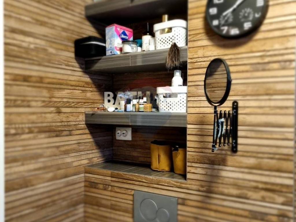 Kat se sastoji od hodnika, open space dnevnog boravka sa kuhinjom i blagovaonom te izlazom na balkon, 2 spavaće sobe također s izlazom na balkon i kupaonice s toaletom.