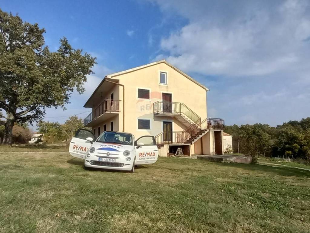 Na prodaju je velika kuća u malom mirnom selu kod Juršića koju je potrebno obnoviti po vlastitoj želji i ukusu. Kuća se nalazi na čestici od 988m2. Kuća je izgrađena 1980. godine i u planu je bilo da budu 4 zasebna stana za članove obitelji. 2 stana na prvom katu su bila i opremljena za življenje, dok su stanovi na prizemlju ostali u rohbau fazi. Tlocrtno,kuća ima 229 m2, što daje ukupno cca 260 m2 stambenog prostora podijeljenog na 4 cjeline + dva podruma od cca 30 m2. Stanovi na katu imaju po jednu kupaonu, kuhinju, hodnik, dnevni boravak i po 2 spavaće sobe. Predviđeni stanovi u prizemlju se još uvijek mogu napraviti po vlastitim idejama, željama i mogućnostima jer su samo sazidani. Ispod kuće su 2 podruma, a postoje posebni ulazi sa dvije strane kuće. Ova nekretnina pruža mogućnost obnove i uređenja po vlastitom ukusu, a najvjerojatnije stavljanje u turističku svrhu.
