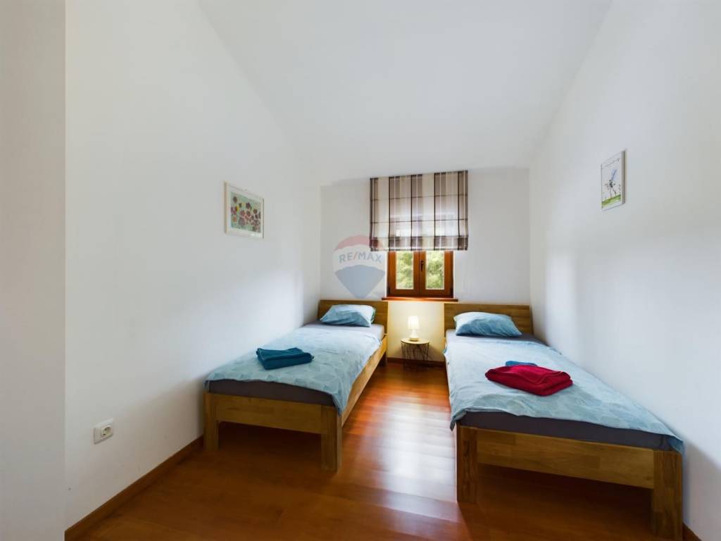 Na okućnici od 70 m2 se osim terase i roštilja nalazi i grijani bazen od 20 m2, sunčalište sa vanjskim tušem te odvojena garaža za 2 automobila.