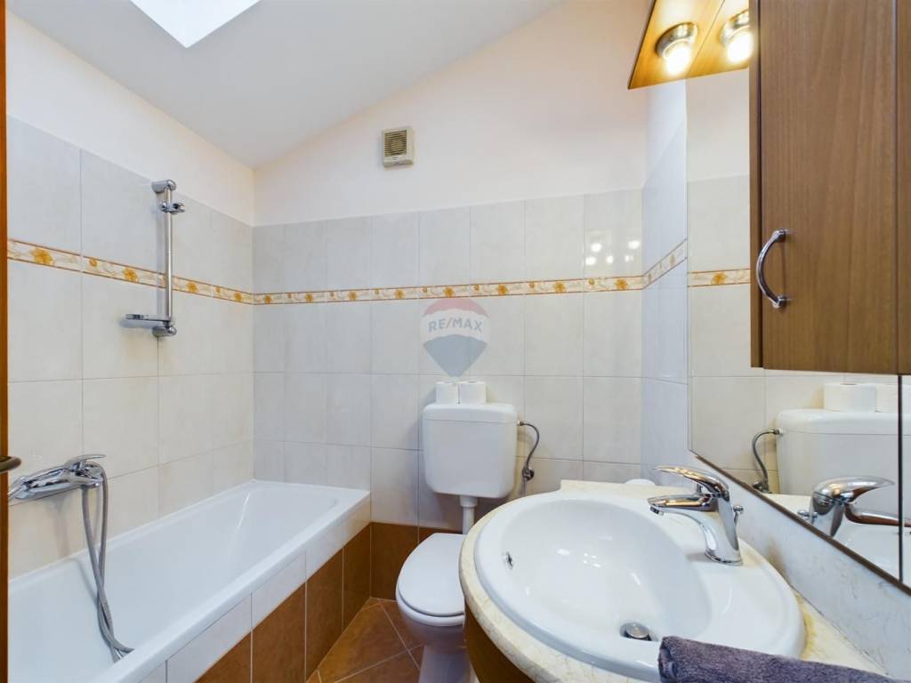 Na mansardnom katu se nalaze hodnik sa stubištem (8,21 m2), 1.spavaća soba od 16,89 m2, 2. spavaća soba od 10,59 m2, 3.spavaća soba od 11,84 m2 i kupaonica od 3,74 m2. Hlađenje i grijanje je reješeno inverter klima uređajima. (x2)