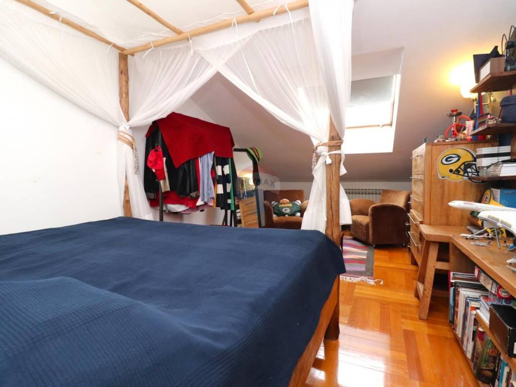 Na Sveticama u zgradi novije gradnje s liftom prodaje se prostrani dvoetažni stan. Na prvoj etaži nalazi se dnevni boravak s blagovaonicom i kuhinjom, jedna spavaća soba, kupaonica i dvije loggie. Na drugoj etaži su tri sobe, kupaonica i walk in ormar površine 5.3m2 s visinom preko 3.5m. Etažno centralno grijanje na plin, sva brojila su odvojena, svaka soba ima zasebni klima uređaj. U podrumu zgrade je prostrano spremište. Oko zgrade je veliki besplatni parking a okretište tramvaja Borongaj je na udaljenosti 300m.