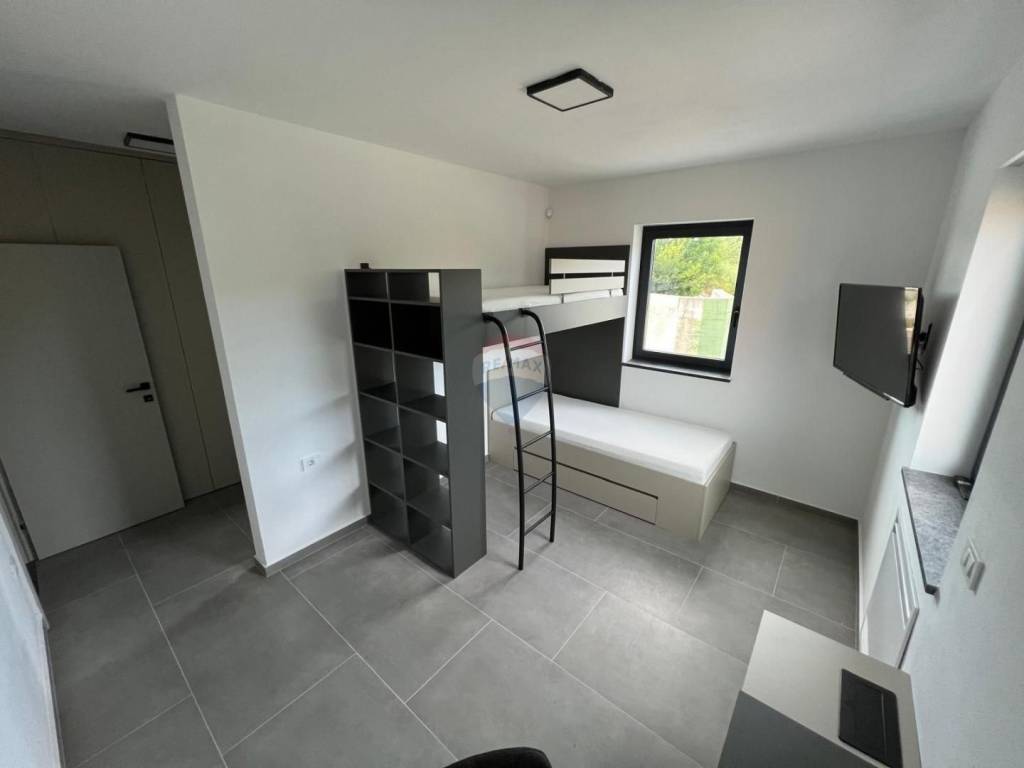 Kuća je sagrađena kvalitetnim materijalima i izvedbom; aluminijska stolarija, talijanska keramika, moderni sustavi grijanja i hlađenje - fan cooleri, podno grijanje pomoću dizalice topline.