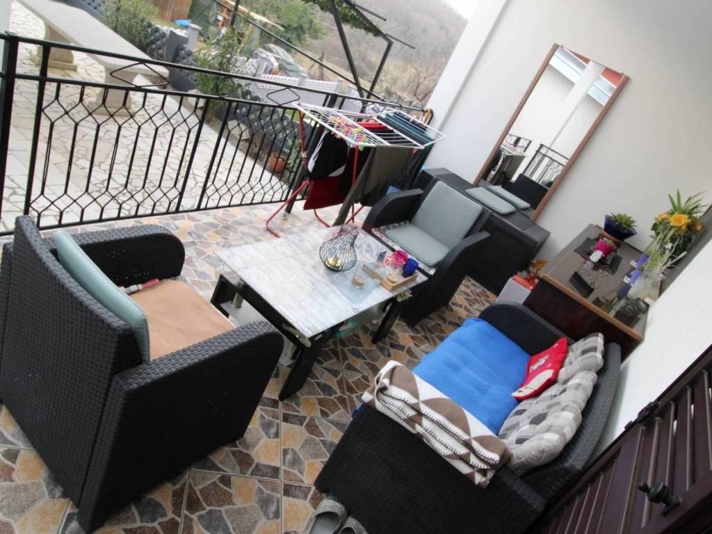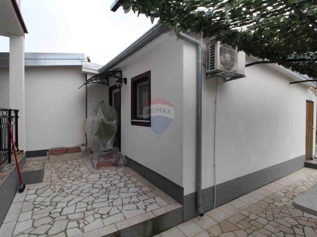 Stan u okolici Poreča veličine 90 m2 sa legaliziranim objektom u vrtu. Stan je renoviran 2018 godine , sastoji se od ulaznog hodnika koji razdvaja spavaće sobe od dnevnog boravka i kuhinje. Velika kupaona smjestila se između dnevnog boravka i spavaćih soba. Iz kuhinje stan pruža izlaz na natkrivenu terasu veličine 13 m2 . Legalizirani i etažirani objekt veličine 38 m2 u vrtu prenamjenjen je u mali apartman sa jednom spavaćom sobom, kupaonom i dnevnom boravku sa kuhinjom. Trenutno se iznajmljuje postanarima tokom cijele godine.