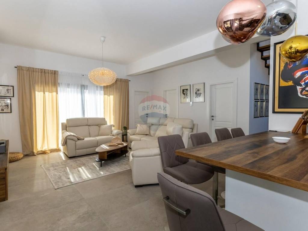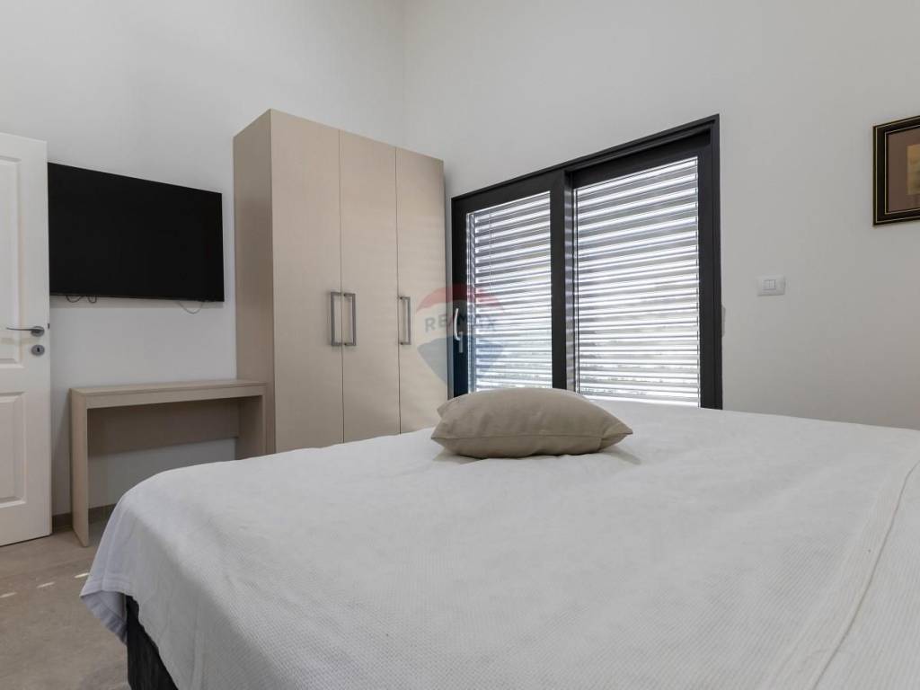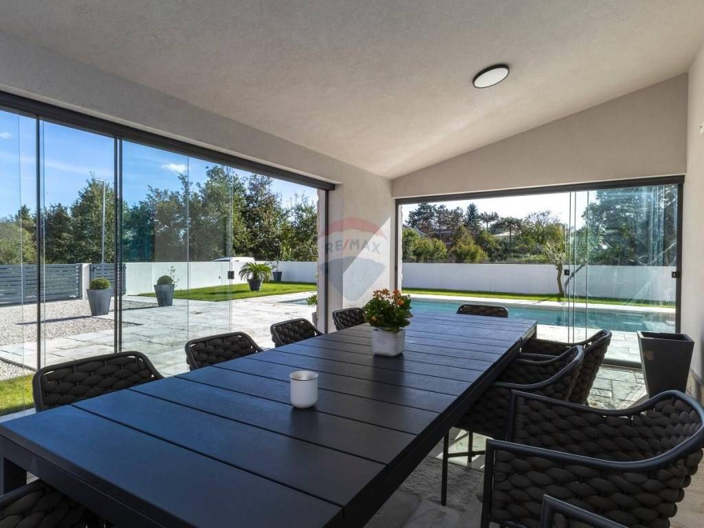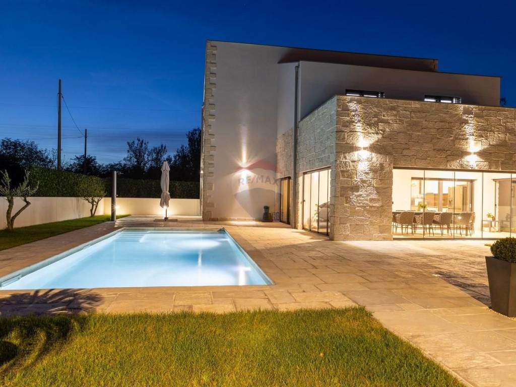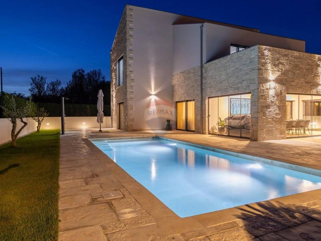 Svega 15 minuta vožnje od mora u mirnom i zelenom okruženju Općine Svetvinčenat smjestila se moderna katnica s bazenom. Stambena površina od 150 m2 proteže se se kroz dvije etaže sa velikom i uređenom okućnicom, te parkingom za 2 automobila. Prizemlje se sastoji od spavaće sobe s vlastitom kupaonom, malim wc-om , ulaznim hodnikom te velikim dnevnim boravkom s kuhinjom te blagavaonom.