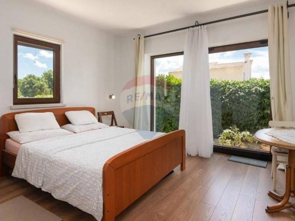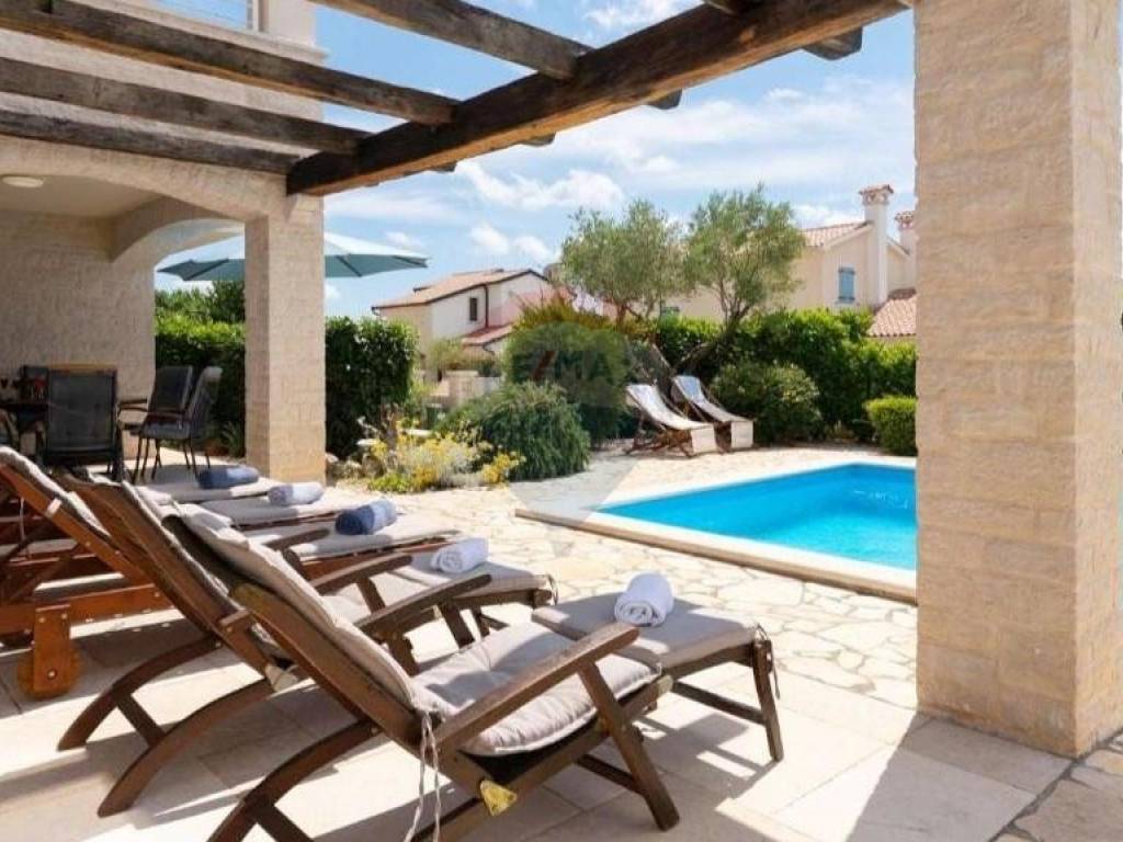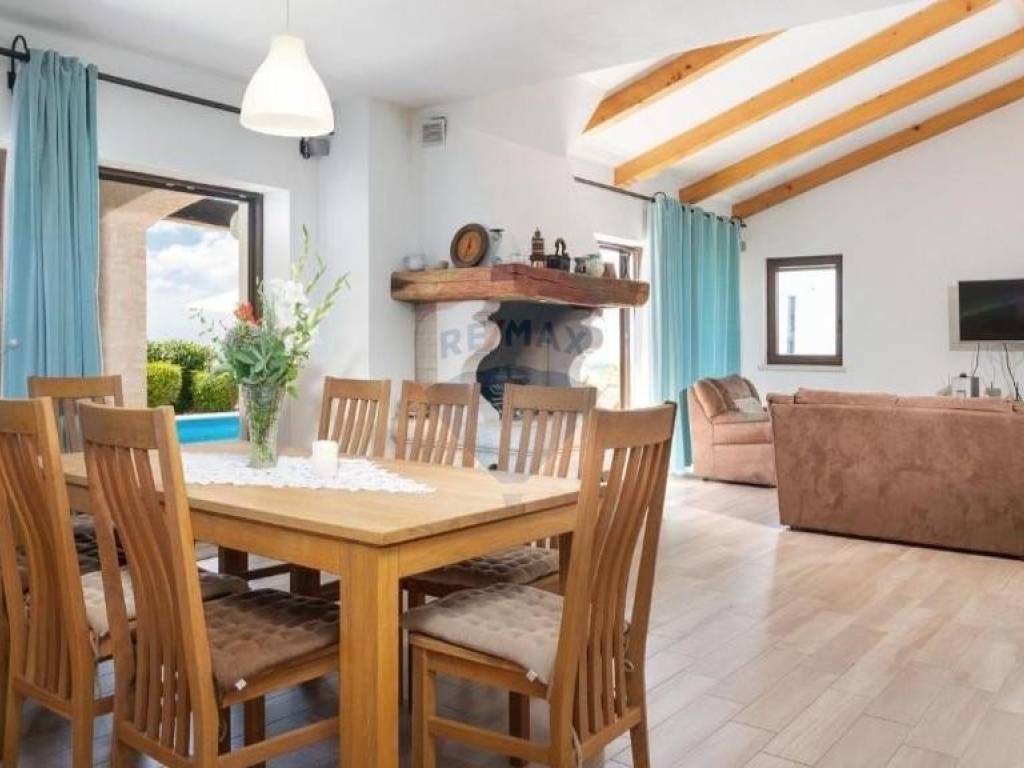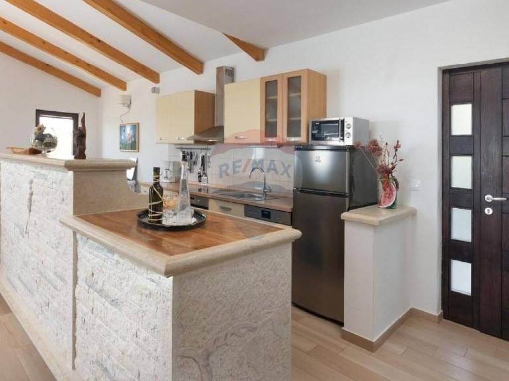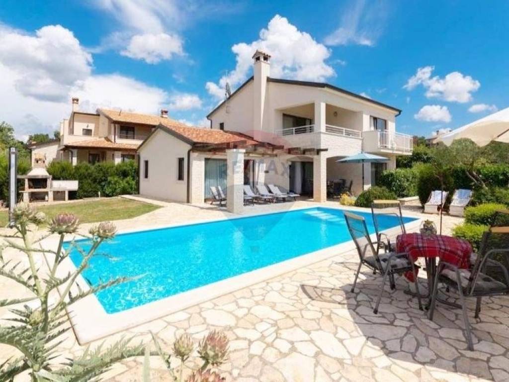 Prodaje se lijepa kuća smještena u blizini Višnjana, na udaljenosti od 13 km do mora. Smještena je na kraju malog, mirnog mjesta što joj pruža otvoreni pogled prema zapadu i moru. Kuća se sastoji od open space dnevnog djela s kuhinjom i blagovaonom, kupatila i jedne spavaće sobe u prizemlju dok su na katu smještene još dvije spavaće sobe, svaka sa svojom kupaonom te izlazom na prostranu, osunčanu terasu s predivnim pogledom na okolne maslinike, vinograde pa sve do mora. Kuća je sagrađena 2018. godine te je smještena na parceli od 762 m2. U svakoj prostoriji su postavljeni klima uređaji, dok se u dnevnom djelu nalazi veliki kamin s opcijom puhanja koji može grijati cijelo prizemlje kuće. Također su postavljene instalacije za podno grijanje kroz cijelu kuću koje je potrebno spojiti na dizalicu topline. Sa svojom odličnom lokacijom u blizini vrhunskih restorana i vinarija te očaravajućim, panoramskim pogledom na more ova je nekretnina idealna za rentu i ljubitelje Istarskog podneblja.