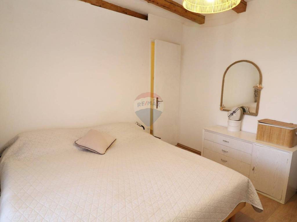 Prodaje se kamena kuća u nizu, smještena u centru predivnog turističkog grada Vrsara. Sastoji se od 3 etaže od 70 m2. Stan u prizemlju se sastoji od ulaznog hodnika, dnevnog boravka s kuhinjom i blagovaonom, kupatila te jedna spavaće sobe. Na gornjem katu se nalazi drugi stan koji se sastoji od hodnika, kuhinje i spavaće sobe s lijeve strane dok su blagovaona i dnevni boravak na desnoj strani. Iz dnevnog djela se izlazi na terasu s lijepim pogledom prema moru. U hodniku se nalazi stepenište koje vodi na tavan koji se može prenamijeniti u dodatne spavaće sobe ili još jednu stambenu jedinicu. Radi svoje odlične pozicije u centru grada, na udaljenosti od tek 300tinjak metara od mora ova nekretnina je idealna za one koji se žele baviti turizmom.