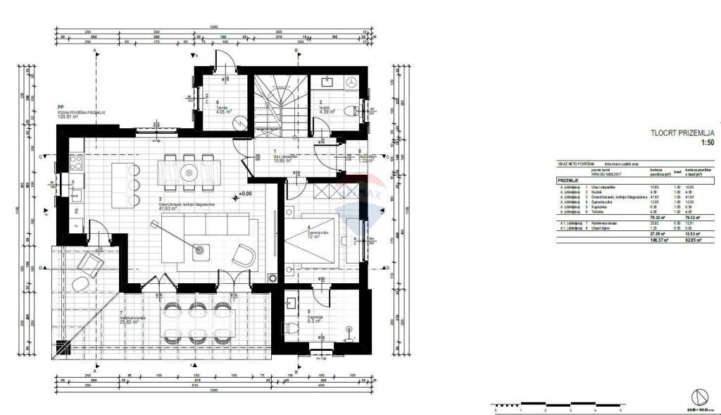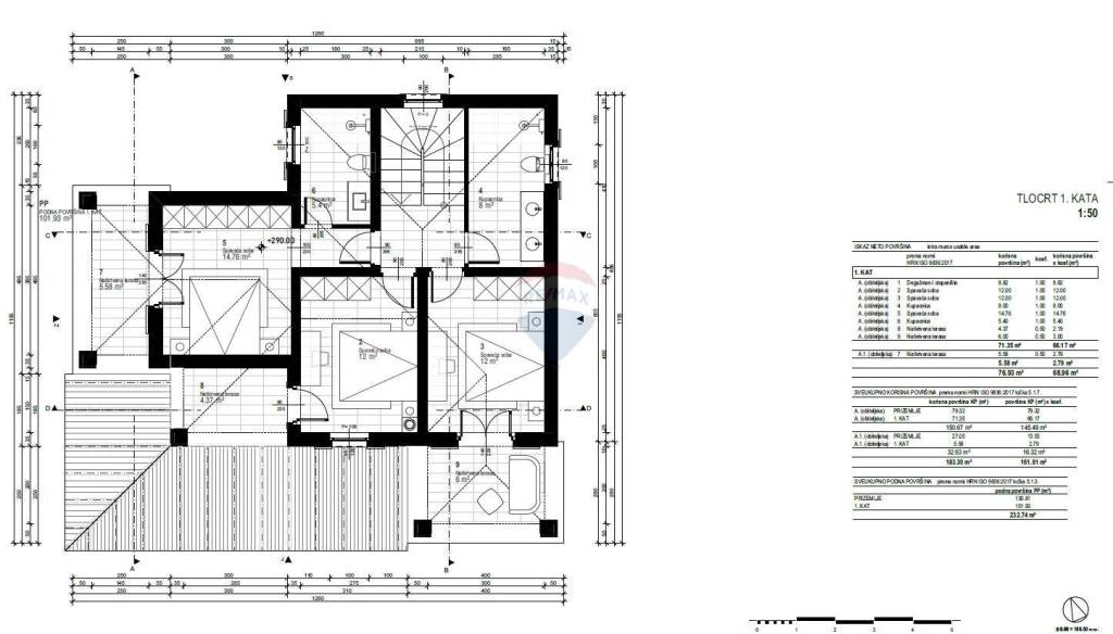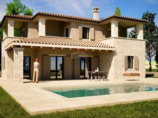 Prodaje se kuća smještena u blizini centra Kaštelira. Planira se dovršetak gradnje krajem 2025.godine. Kuća će biti ukupne površine 183m2. U prizemlju će se nalaziti dnevni boravak s open space kuhinjom i blagovaonom, jedna spavaća soba s kupatilom, toalet i tehnička soba. Na gornjem katu će biti smještene još tri spavaće sobe s dva kupatila i dvije terase. Iz dnevnog djela će se izlaziti na natkrivenu terasu i dvorište površine 850 m2 s bazenom od 30m2. Sa same parcele vidi se more, dok će s terasa na katu biti još ljepši i otvoreniji pogled. Planirano je podno grijanje na dizalicu topline, a za hlađenje će biti postavljeni fancoileri u svim prostorijama. Ovo je idealna prilika za one koji žele pratiti izgradnju kuće te birati finalni izgled i materijale interijera.