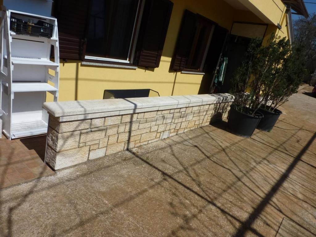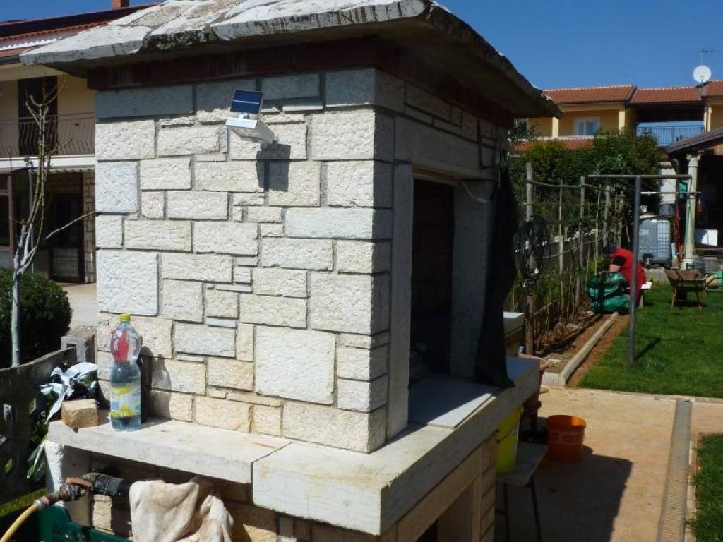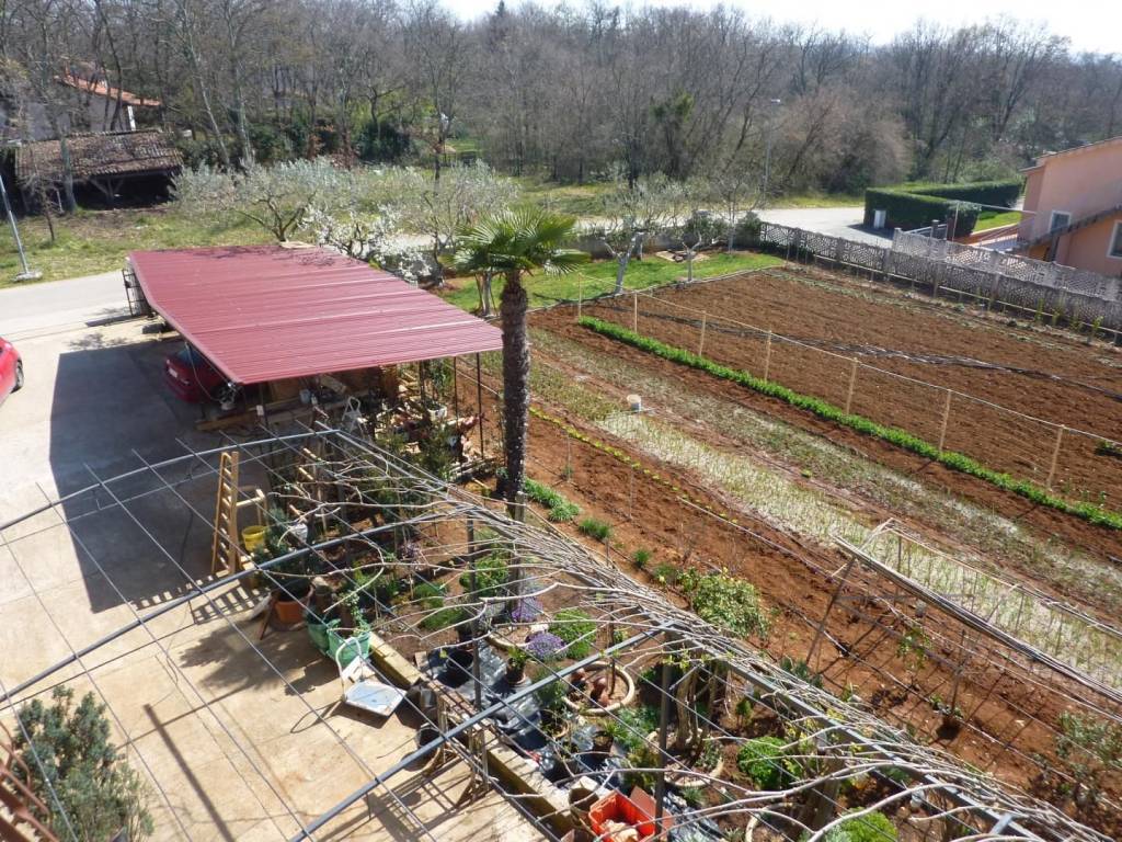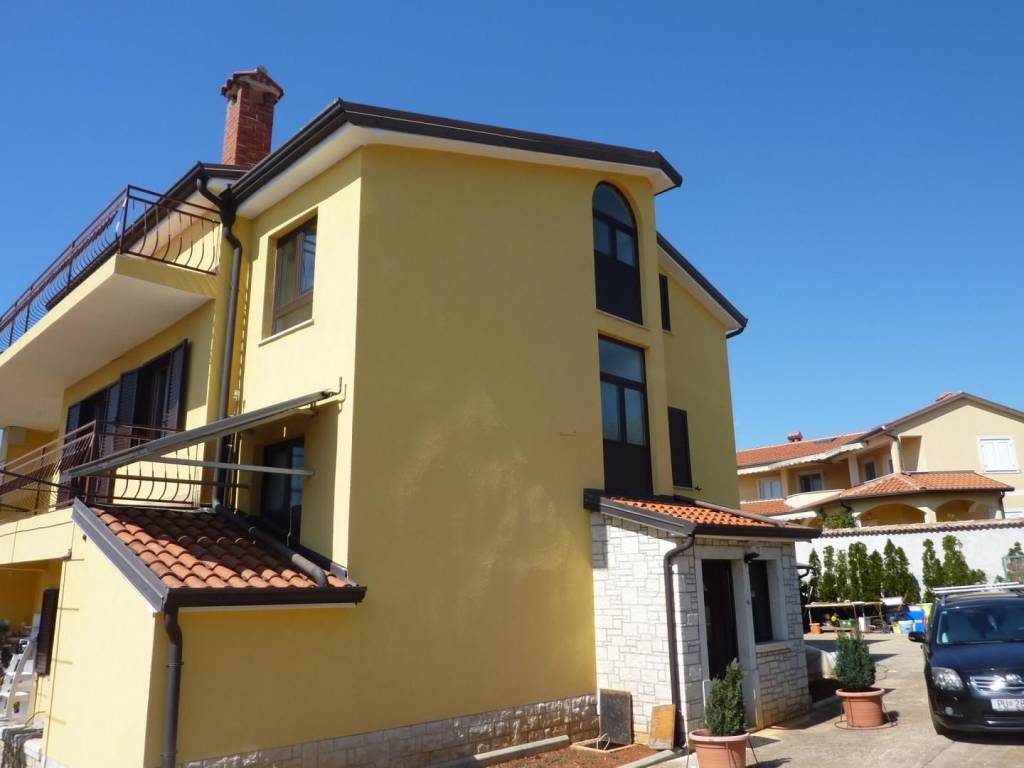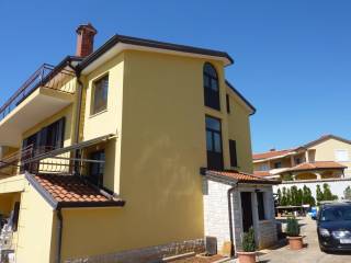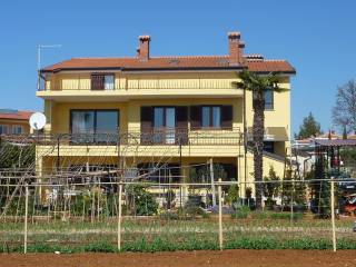 Velika obiteljska kuća sa 4 stana u blizini Poreča. Kuća se sastoji od tri etaže. Na prvoj se nalazi stan od 150m2 koji u svom stražnjem dijelu ima prolaz prema ljetnoj kuhinji i svim radnim sadržajima. Stan se sastoji od dnevnog boravka, kuhinje sa blagovaonicom, dvije spavaće sobe i kupaonice, kompletno uređen i u njemu žive vlasnici. Iz tog stana se prolazi do ljetne kuhinje i svih radnih sadržaja. Na prvom katu se nalazi stan od 150 m2, sa čije se terase pruža predivan pogled na parcelu i okolne kuće i šume. Stan se sastoji od velikog dnevnog boravka, kuhinje s blagovaonicom, dvije spavaće sobe i dvije velike terase. Na drugom katu se nalaze dva jednosobna stana svaki sa svojom kuhinjom, dnevnim boravkom spavaćom sobom i kupaonicom, iz jednog stana postoji izlaz na ogromnu terasu s koje se pogled pruža sve do mora. Stan na prvom i stanovi na drugom katu godinama se uspješno iznajmljuju u turističkoj sezoni. Parcela oko kuće veličine je 1408m2 kvadratnih i opremlejna je vanjskim kaminom sa roštiljem i sudoperom, vanjskim kamenim stolom i natkrivenim parkirnim mjestima. Na samoj parceli zasađen je i ekološki vrt sa raznim vrstama povrča i stablima voća.