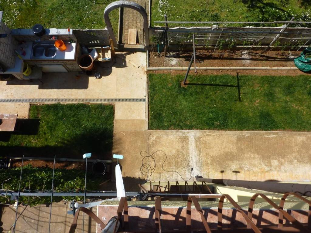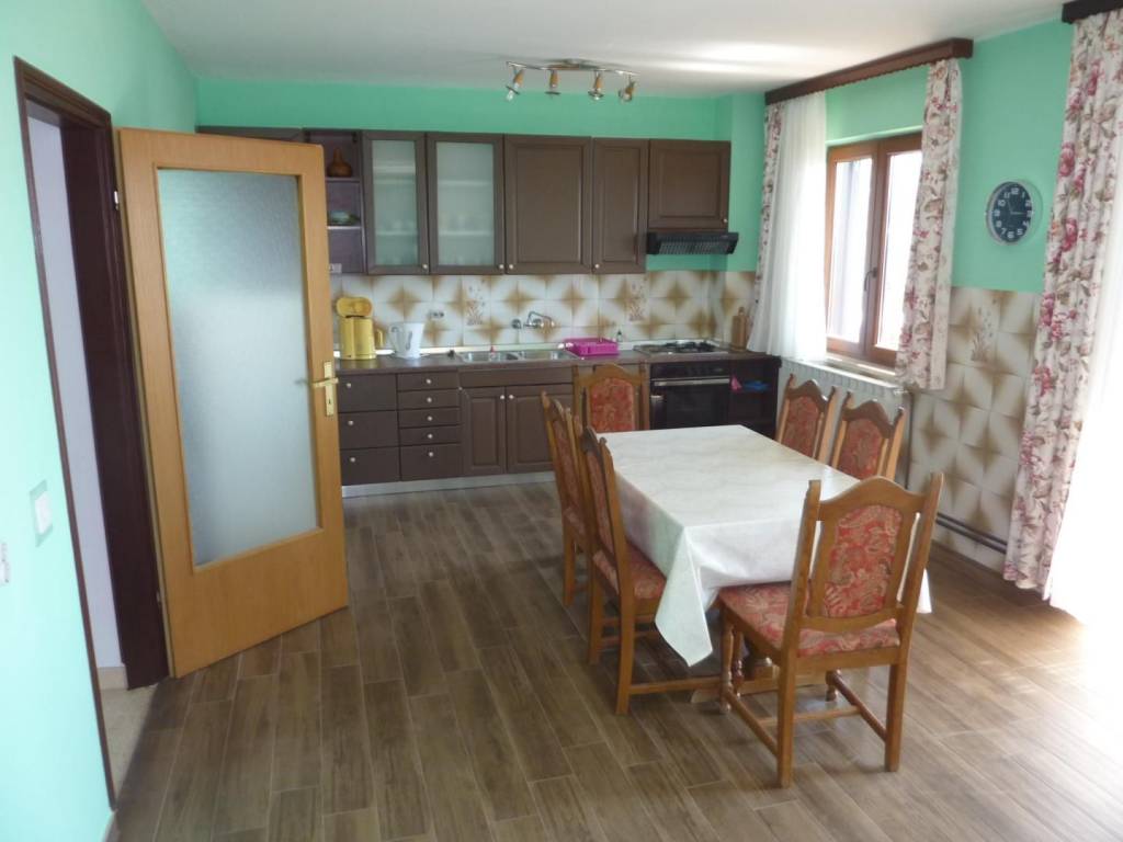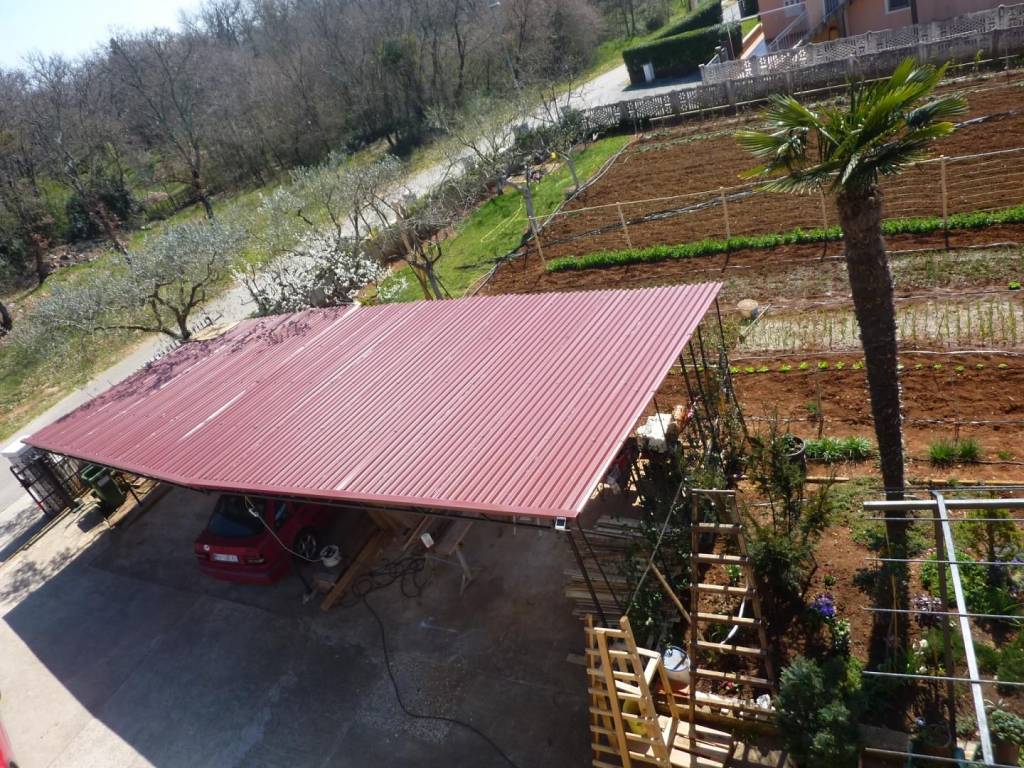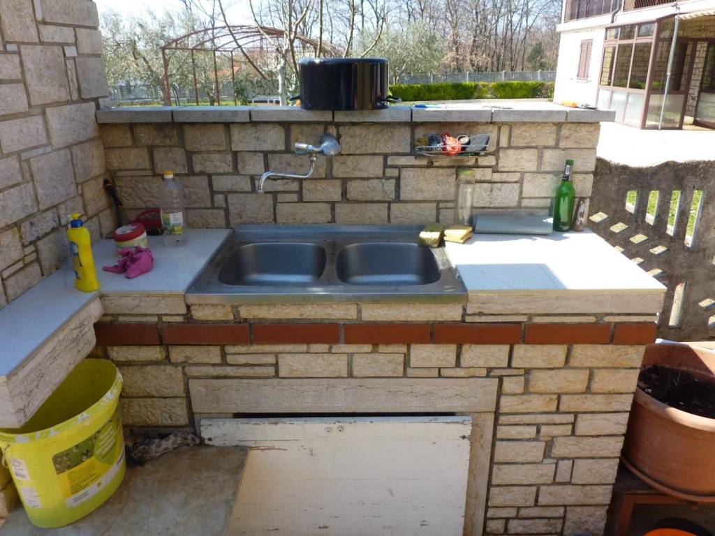 Velika obiteljska kuća sa 4 stana u blizini Poreča. Kuća se sastoji od tri etaže. Na prvoj se nalazi stan od 150m2 koji u svom stražnjem dijelu ima prolaz prema ljetnoj kuhinji i svim radnim sadržajima. Stan se sastoji od dnevnog boravka, kuhinje sa blagovaonicom, dvije spavaće sobe i kupaonice, kompletno uređen i u njemu žive vlasnici. Iz tog stana se prolazi do ljetne kuhinje i svih radnih sadržaja. Na prvom katu se nalazi stan od 150 m2, sa čije se terase pruža predivan pogled na parcelu i okolne kuće i šume. Stan se sastoji od velikog dnevnog boravka, kuhinje s blagovaonicom, dvije spavaće sobe i dvije velike terase. Na drugom katu se nalaze dva jednosobna stana svaki sa svojom kuhinjom, dnevnim boravkom spavaćom sobom i kupaonicom, iz jednog stana postoji izlaz na ogromnu terasu s koje se pogled pruža sve do mora. Stan na prvom i stanovi na drugom katu godinama se uspješno iznajmljuju u turističkoj sezoni. Parcela oko kuće veličine je 1408m2 kvadratnih i opremlejna je vanjskim kaminom sa roštiljem i sudoperom, vanjskim kamenim stolom i natkrivenim parkirnim mjestima. Na samoj parceli zasađen je i ekološki vrt sa raznim vrstama povrča i stablima voća.