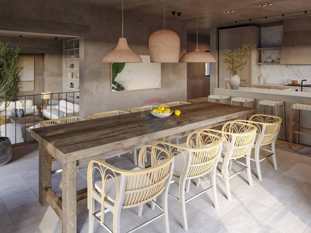 Unutrašnjost ove dvoetažne kuće premašuje 270 m2 . Sastoji se od četiri spavaće sobe svaka s vlastitom kupaonicom, velika otvorena kuhinja s blagovaonicom, vrlo prostrani dnevni boravak te dvije lođe na gornjem katu. Posebnost interijera je wellness zona koja uključuje i vanjski prostor za opuštanje. Ipak, pravi dragulji nalaze se u eksterijeru – omiljena ljetna kuhinja, dvije terase, prostor za sunčanje te jedinstveni bazen. Bazen je uklopljen u ruševine stare kamene kuće, što stvara dojam da je dio prirode, potpuno stopljen s okolinom.
