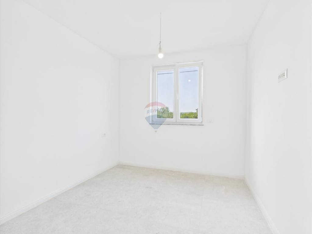 Stan se sastoji od hodnika, dnevnog boravka s kuhinjom i blagovaonom, 2 spavaće sobe, 1 kupaonice, natkrivene terase, te dva parkirna mjesta ispred zgrade.
