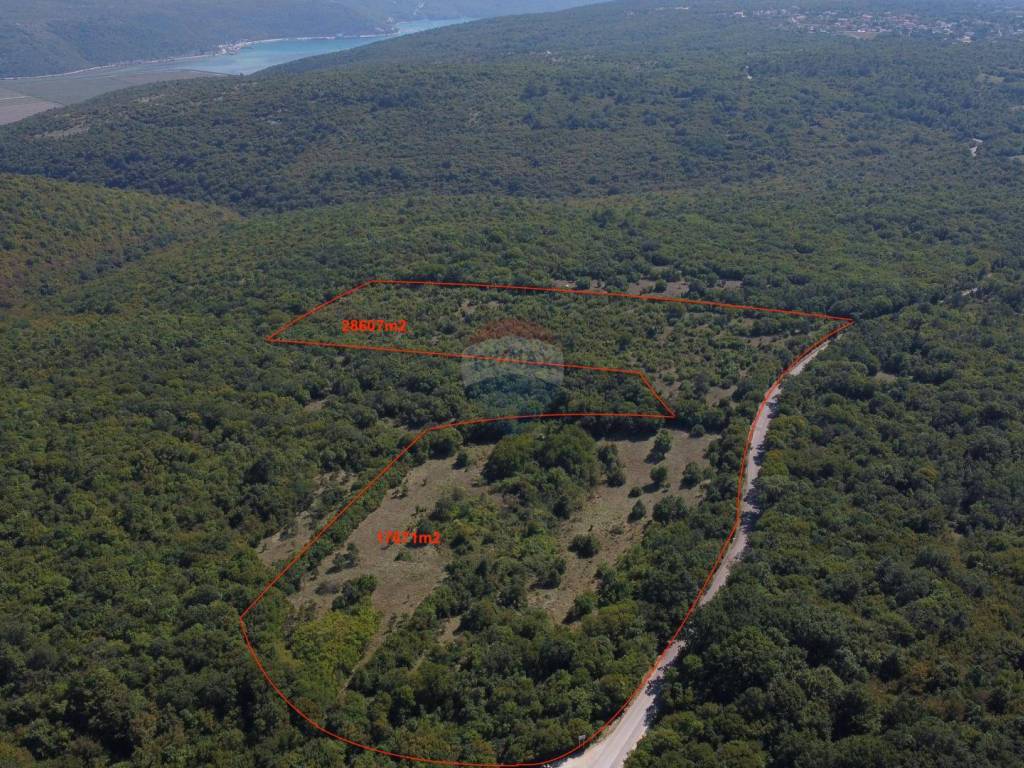 Prodaje se veliko zemljište ukupne površine 46 278m2 od kojih 20 000m2 čine građevinski dio turističke namjene a ostatak od 26 278m2 rekreacijske namjene. Turistička namjena zemljišta ne ograničava gradnju kuća za odmor ni u kojem pogledu a rekreacijska namjena ostatka zemljišta dozvoljava gradnju popratnih sadržaja u cilju oplemenjivanja cijelog turističkog kompleksa. Cijena zemljišta je spuštena sa 700 000e odnosno prosječna cijena građevinskog zemljišta tog područja 30e/m2 te 3e/m2 za rekreacijski dio na 20€/m2 i 2,5€/m2 odnosno 350 000e za cijeli kompleks. Zemljište je jedino u građevinsko u radiusu od 1,5 km stoga su potpuni mir i privatnost osigurani a prilaz je direktan sa sporedne asfaltirane ceste. Sa zemljišta se ne vidi direktno more no s viših katova kuća to bi trebalo biti moguće s obzirom da je udaljenost od istog manja od 2,5 km Infrastruktura je nedavno dovedena do samog ruba parcele a uključuje struju, vodu i kanalizaciju. Vlasništvo pravne osobe.