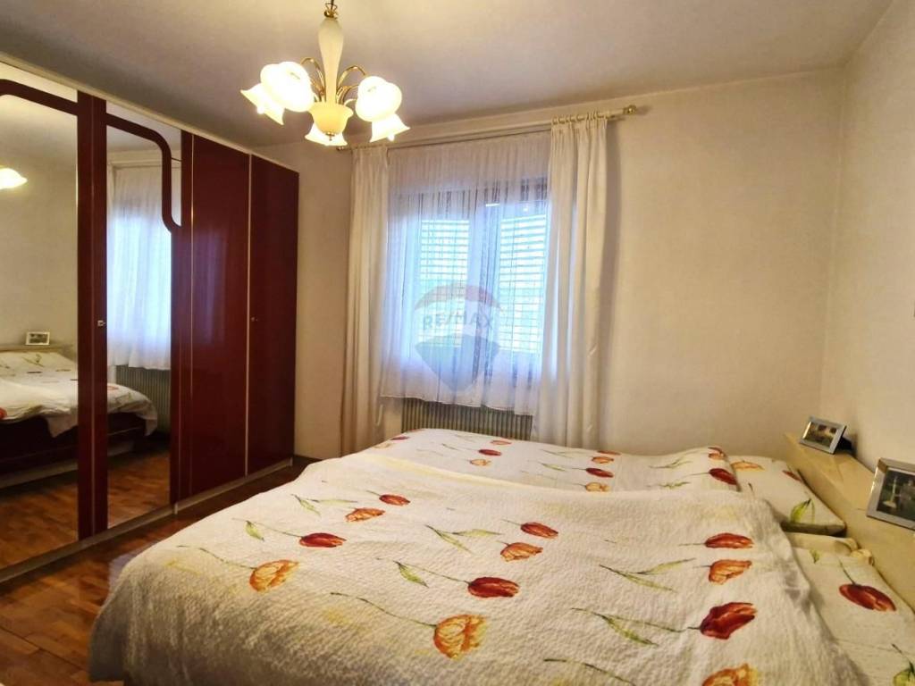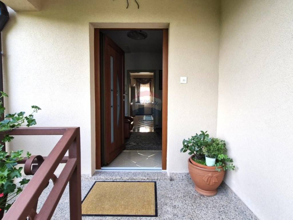 Nekretnina odiše osjećajem privatnosti i prirodnog mira, a posebno očarava bazen s fontanom, smješten u uređenom dvorištu koje podsjeća na cvjetni park skriven u srcu prirode. Okruženje je idealno za opuštanje, boravak na otvorenom i uživanje u svakom godišnjem dobu. Kuća se prostire na dvije etaže – prizemlje i kat, povezane unutarnjim i vanjskim stepenicama, čime se omogućuje funkcionalnost, ali i potencijal za korištenje kao dvije odvojene stambene jedinice. U prizemlju su već postavljene nove instalacije za struju i vodu, te je sve pripremljeno za postavljanje podnih obloga po želji budućeg vlasnika. Prostor se sastoji od dnevnog dijela koji uključuje kuhinju, blagovaonicu i dnevni boravak, jedne spavaće sobe te kupaonice – idealno kao zaseban stan ili prostor za goste.Na katu se nalazi hodnik koji vodi prema tri udobne spavaće sobe, prostranoj kupaonici i odvojenom toaletu. Kuhinja ima izlaz na veliki balkon s prekrasnim pogledom na zelenilo i dvorište, dok su blagovaonica i dnevni boravak povezani u jednu veliku i svijetlu prostoriju, također s izlazom na balkon, što prostoru daje dodatnu prozračnost i povezanost s prirodom.Kuća je tehnički i infrastrukturno kvalitetno opremljena – krov i fasada obnovljeni su prije 7 godina, postavljena je aluminijska stolarija, uveden je videonadzor s kamerama na ulazu te sustav daljinskog upravljanja kapijom. Dvorište ima automatsko navodnjavanje, a dodatni izvor vode pruža vlastiti bunar kapaciteta 40 kubika. Svi priključci za kanalizaciju su pripremljeni – potrebno je samo spojiti instalaciju na gradsku mrežu. Također postoji i gotov projekt za pomoćni objekt površine 50 m², što predstavlja dodatni potencijal ove već izuzetne nekretnine.Ova kuća nudi savršen spoj prostranosti, funkcionalnosti, privatnosti i prirodnog ambijenta – idealna za obiteljski život, kuću za odmor ili investiciju u turizam u srcu Istre.