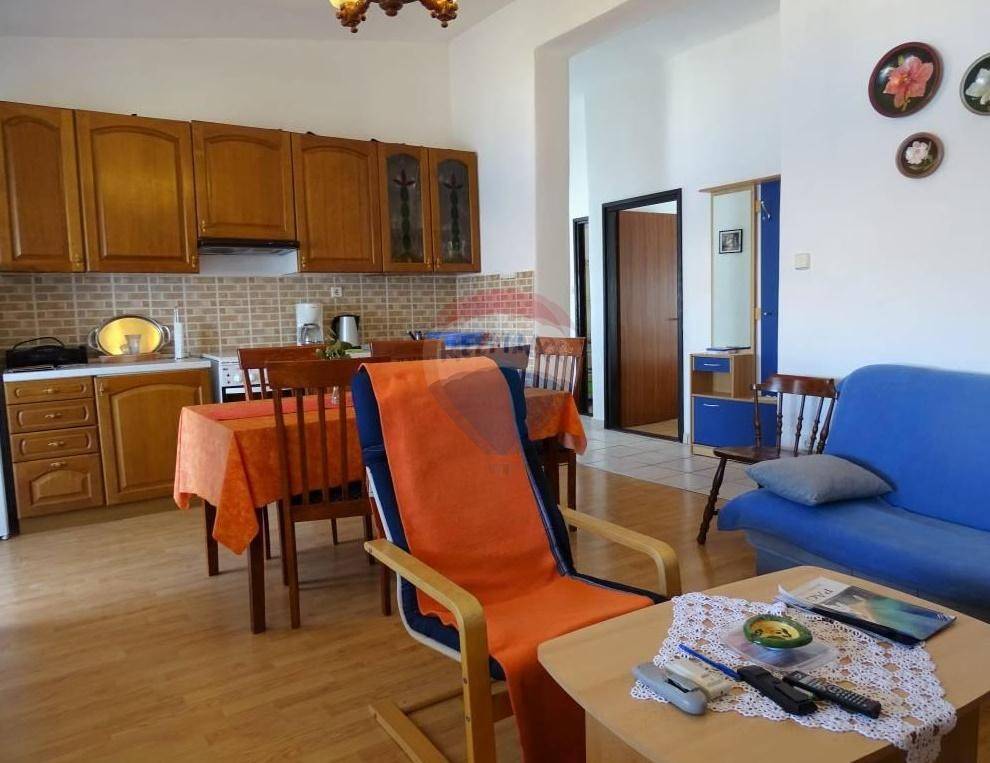 Pag - in the town of Pag we are selling a double house with two apartments, a garage and a garden. The house is located opposite of the old town, in a new settlement that has water and sewage. It was built in 2005. From the large terrace and balcony there is a beautiful view of the sea and specific vegetation of Pag and rocks. In the basement there is a garage, on the first floor a two-bedroom apartment with a living room and a bathroom of 80 m2, and on the second floor is the identical apartment. The house is a great investment - both for living and for tourism. For sightseeing and information contact the agent!