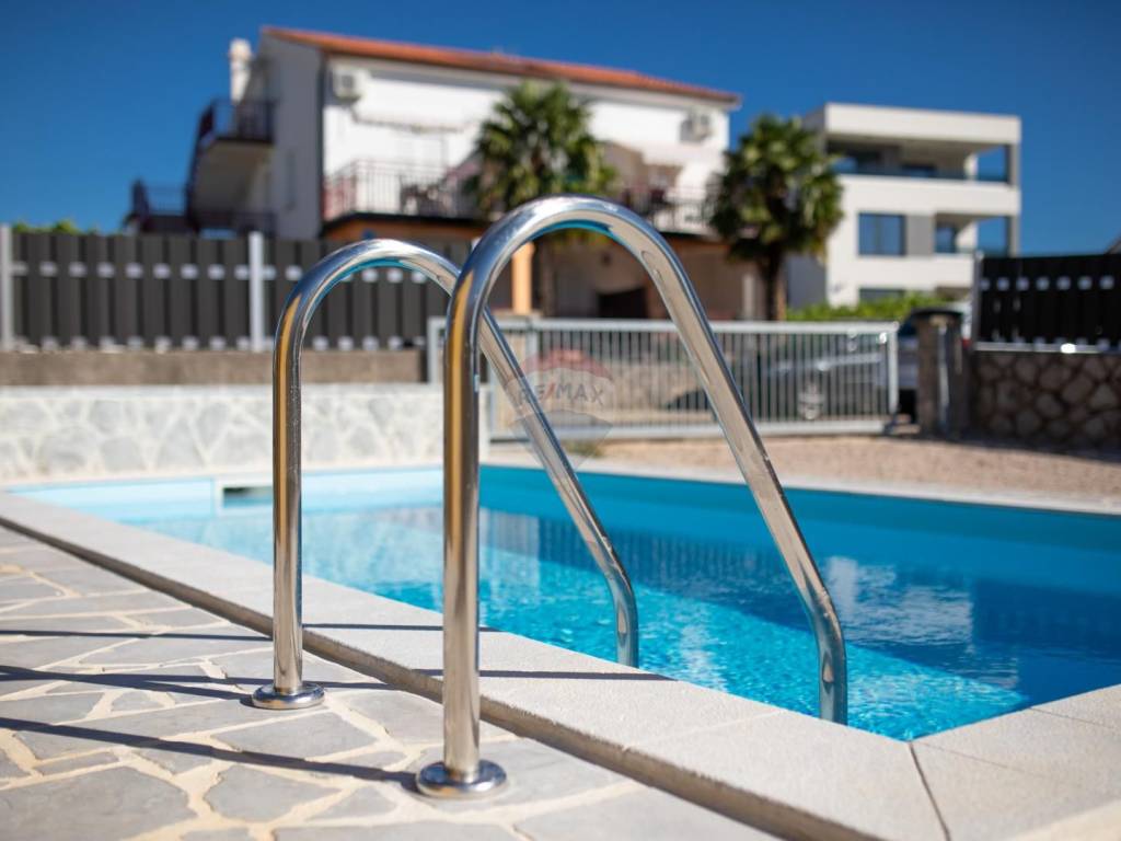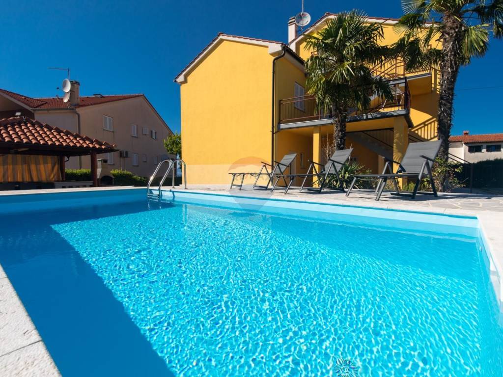 Kuća je potpuno adaptirana i spremna za iznajmljivanje. Okućnica nudi bazen, uređeno sunčalište te prostor za parkiranje pet automobila.