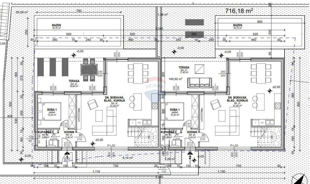 Prodajemo predivnu dvojnu kuću koja u stvarnosti predstavlja dvoetažni stan s ukupnom stambenom površinom od 180m2. Kuća također uključuje terase od 35m2 i prostranu okućnicu od 120m2 na kojoj se nalazi prekrasan bazen, pružajući vam idealan prostor za opuštanje i uživanje na otvorenom.