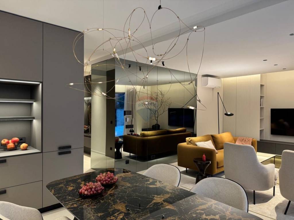 Stan je svijetao, prostran i funkcionalnog rasporeda te se prodaje u potpunosti namješten. Opremljen je aluminijskom stolarijom s roletama i komarnicima, protuprovalnim vratima i video portafonom. Podovi su obloženi troslojnim parketom prilagođenim podnom grijanju, dok su kupaonice opremljene vrhunskim sanitarijama. Grijanje je osigurano dizalicom topline s podnim grijanjem, a klima uređaji postavljeni su u svakoj prostoriji.