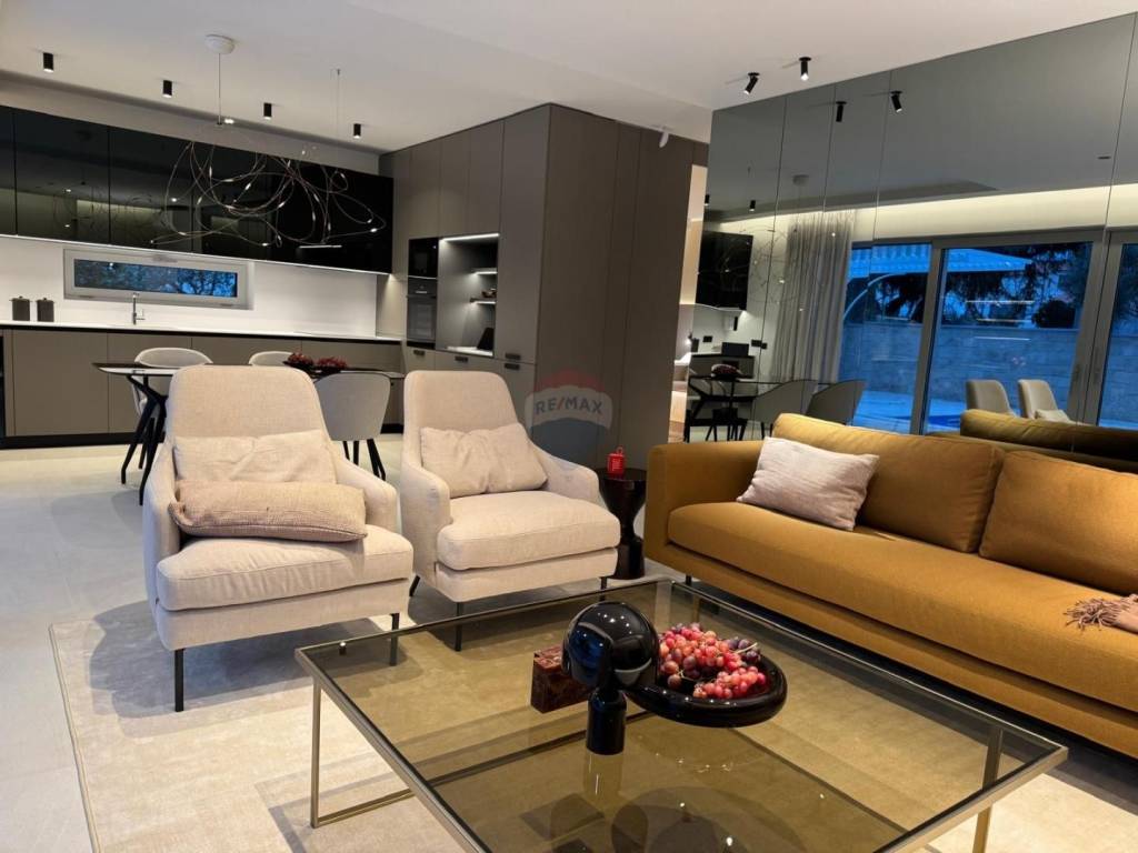 Prodaje se luksuzan dvosoban stan u centru grada Krka, samo 250 metara od mora. Stan se nalazi u prizemlju urbane vile i ukupne je površine 133 m² bruto, dok neto stambena površina, iznosi 74,71m2 plus dodatno natkrivena terasa 26,7m2.