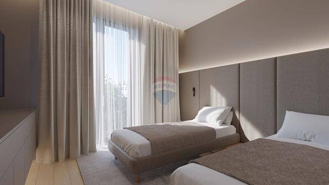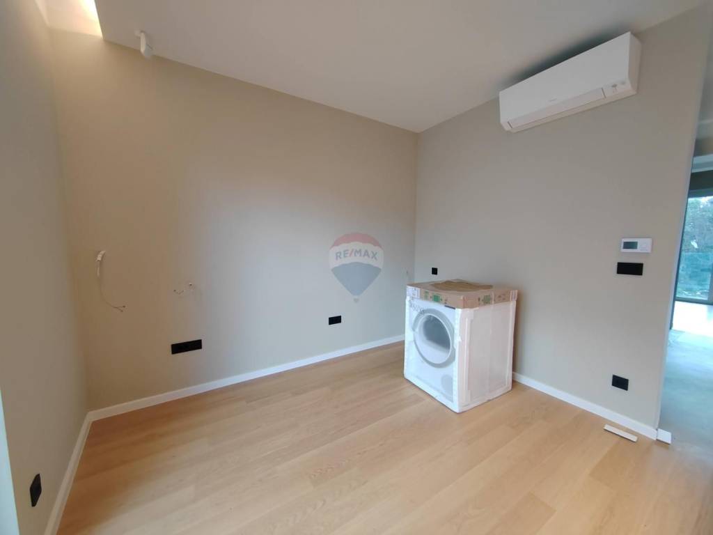 Opremljen je aluminijskom stolarijom s roletama i komarnicima, protuprovalnim vratima i video portafonom.