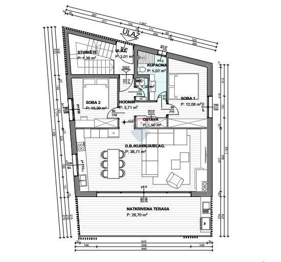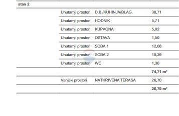 Stan ima stambenu korisnu površinu od 74m2 i 26 m2 natkrivene terase.