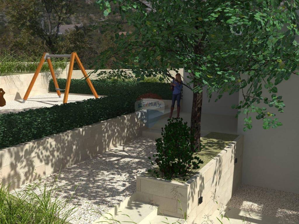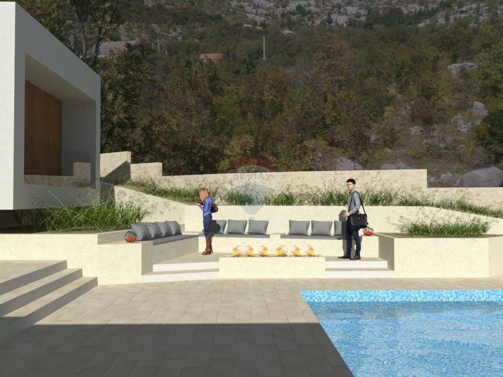 Uz osamu i privatnost, pruža dodatne sadržaje poput bazena, ljetne kuhinje, dječjeg igrališta i 1000 m2 okućnice za uređenje po želji, a sve uz prekrasan pogled na morsku pučinu.
