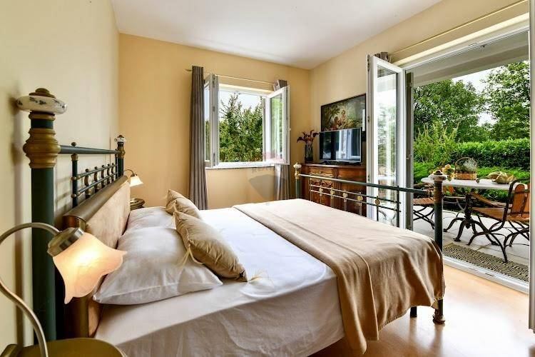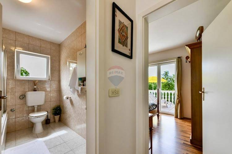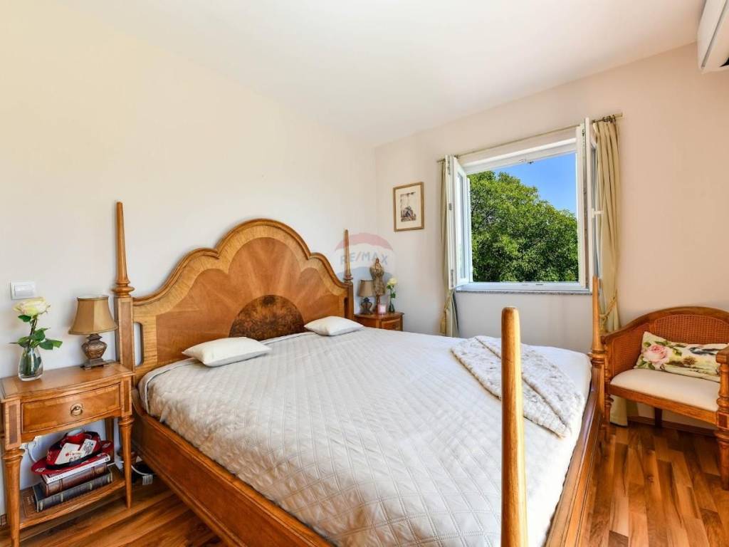 Sa balkona na katu se pruža otvoren pogled koji kombinira zelenilo šume i plavetnilo mora, a terase u prizemlju vode u 680 m2 pažljivo uređenog i njegovanog vrta.