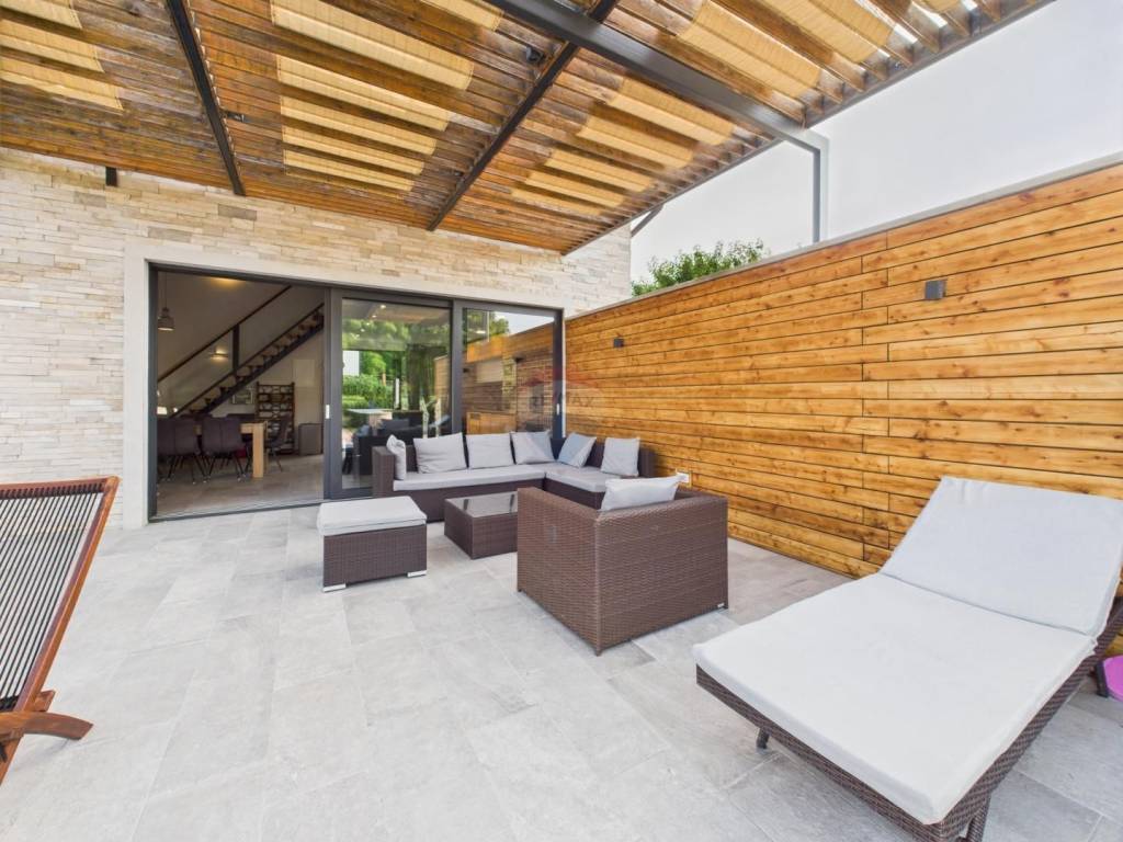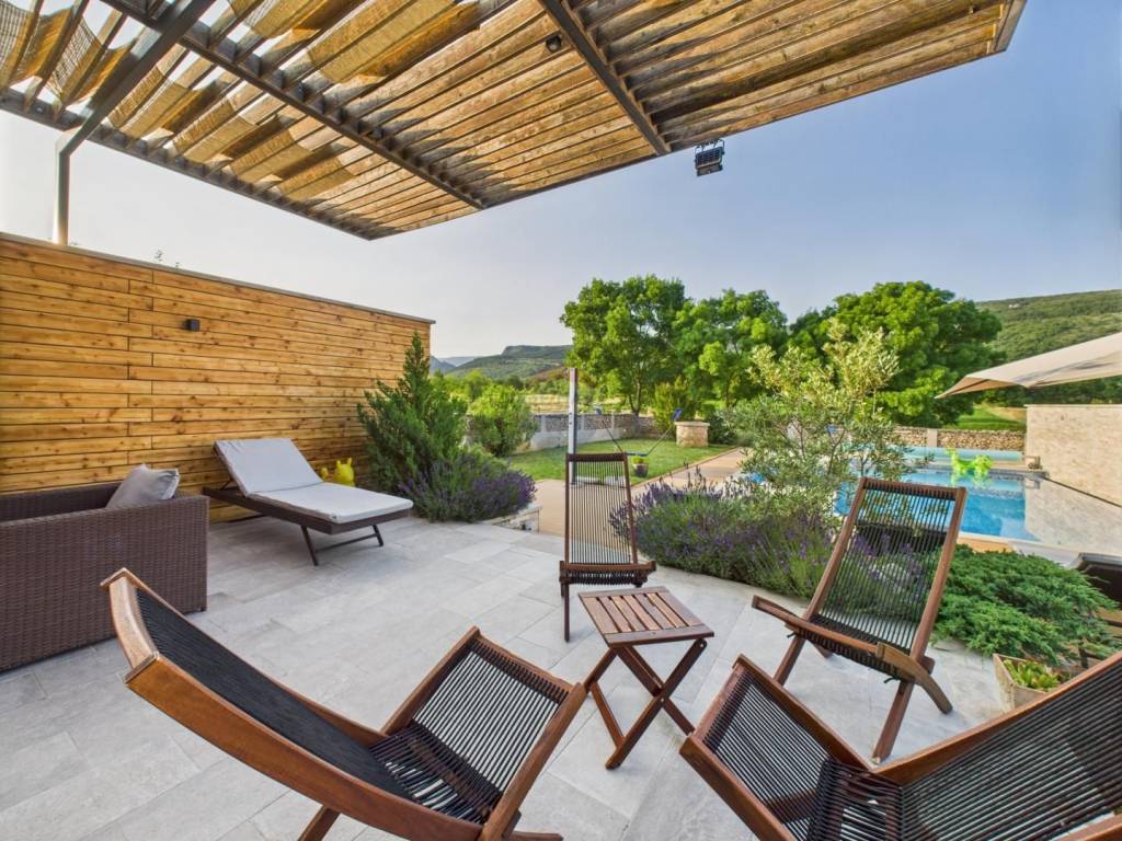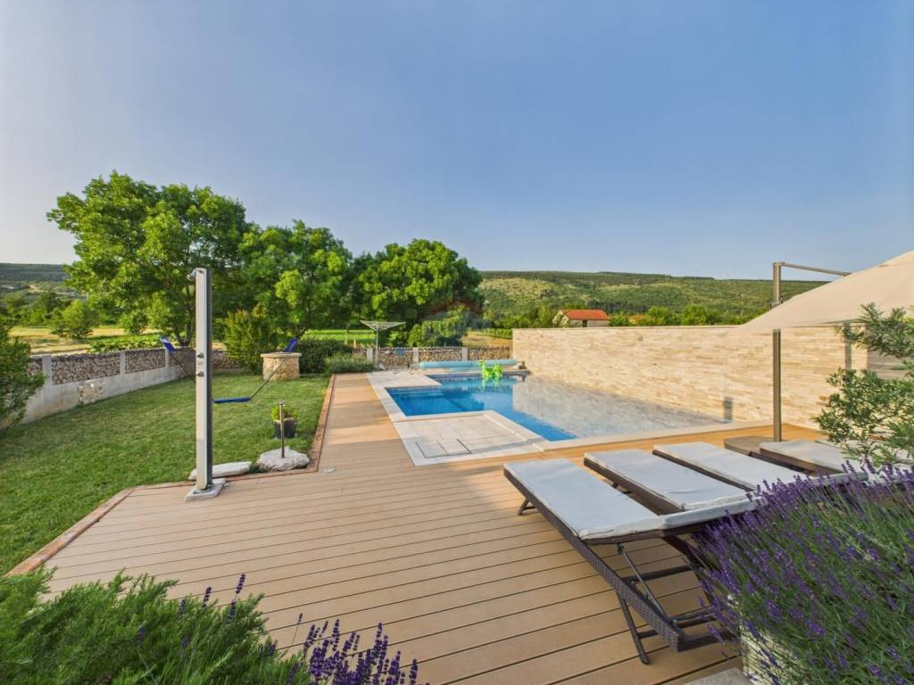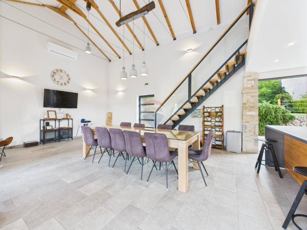 Na posjedu imamo zgradu koja je modernim interijerom predviđena kao ljetna kuhinja sa blagovaonicom i galerijom. Izlaskom na prostranu terasu imate pristup bazenu i predivnom prirodnom okruženju.
