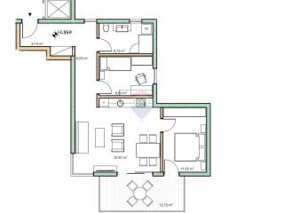 Komforan stan u prizemlju odličnog rasporeda, a koji se sastoji od hodnika, velike kupaonice, 2 spavaće sobe, dnevnog prostora otvorenog koncepta s kuhinjom, blagovaonicom i dnevnim boravkom, te natkrivene terase. Stanu pripada i vrt ispred terase, te ostava u podrumu i garažno parkirno mjesto s punjačem za el. vozila.