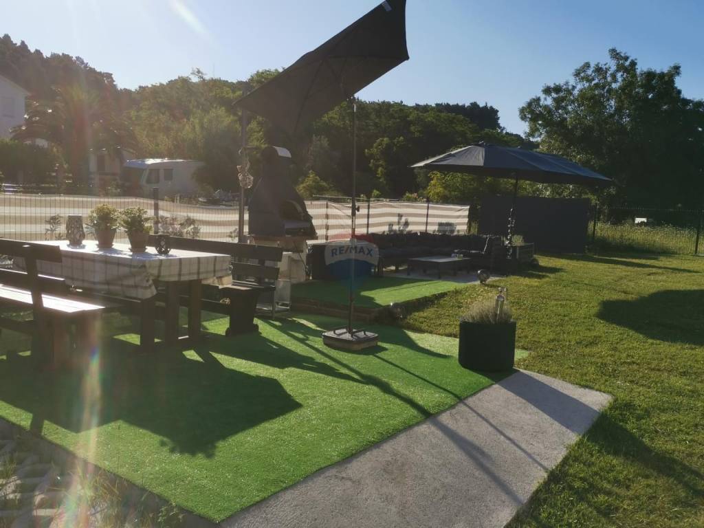 Nalazi se u mirnoj ulici, okružen zelenilom i šumom, pružajući ugodnu i opuštajuću atmosferu. Idealno za obiteljski život ili odmor na otoku.