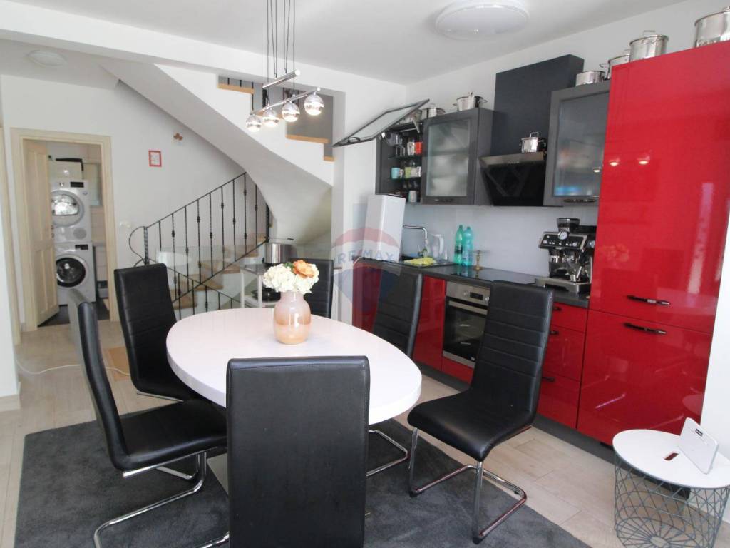 U malom mjestu u okolici grada Novigrada na 150 metara od mora smjestila se ova dvojnica. Kuća kvadrature 95 m2 s 200 m2 okućnice. Sastoji se od podruma , prizemlja te prvog kata. U prizemlju kuće smjestila se spavaća soba s kupaonom , kuhinja s blagavaonom te denvnim boravkom s izlazom na natkrivenu terasu. Na prvom katu smjestile su se dvije spavaće sobe s zajedničkom terasom te jedna kupaona.