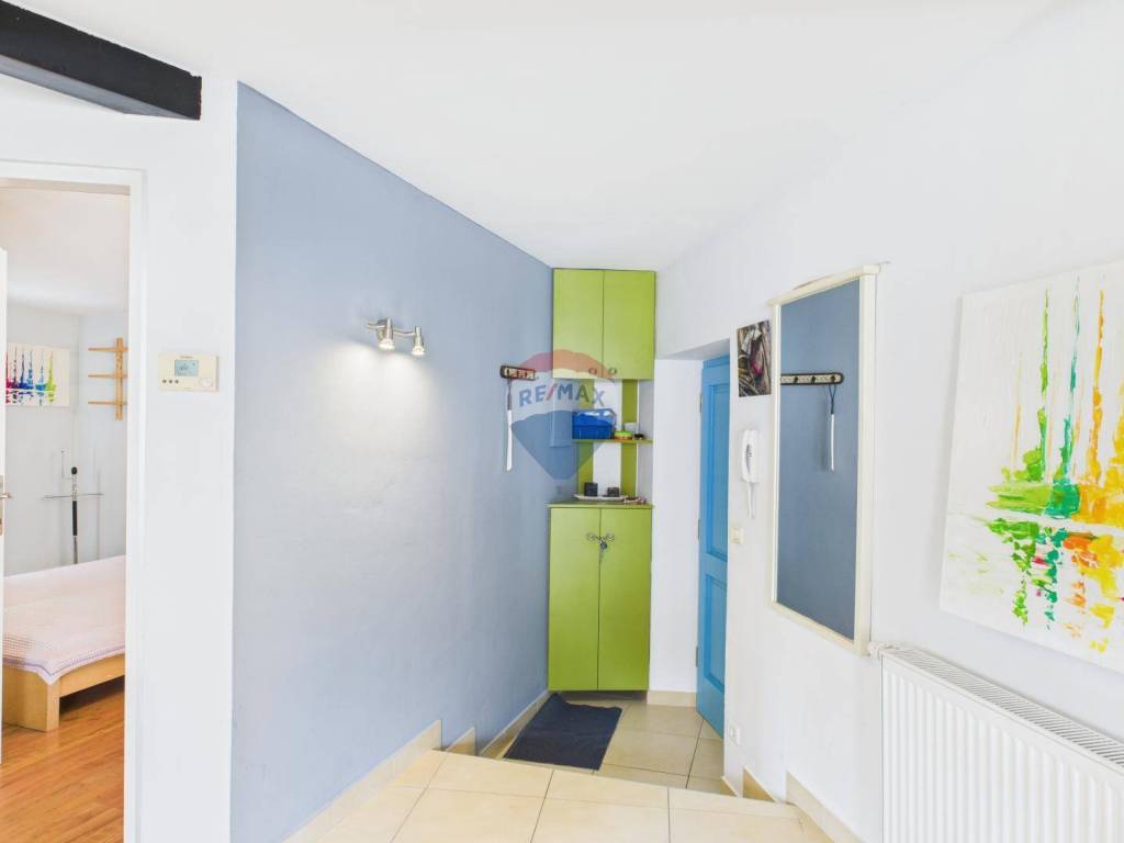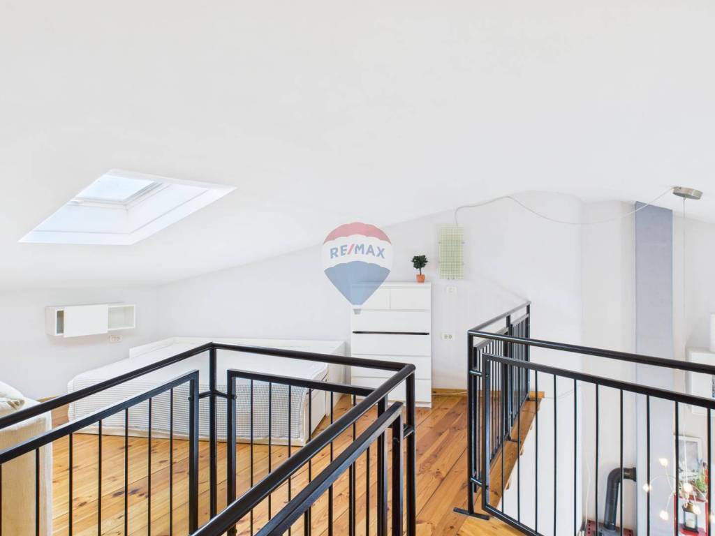 Stan ima visoke stropove i velike staklene otvore koji osiguravaju puno prirodnog svjetla. Opremljen je centralnim grijanjem, klima uređajem i peći na drva. Uz stan dolazi i drvarnica u podrumu te parkirno mjesto u dvorištu zgrade.