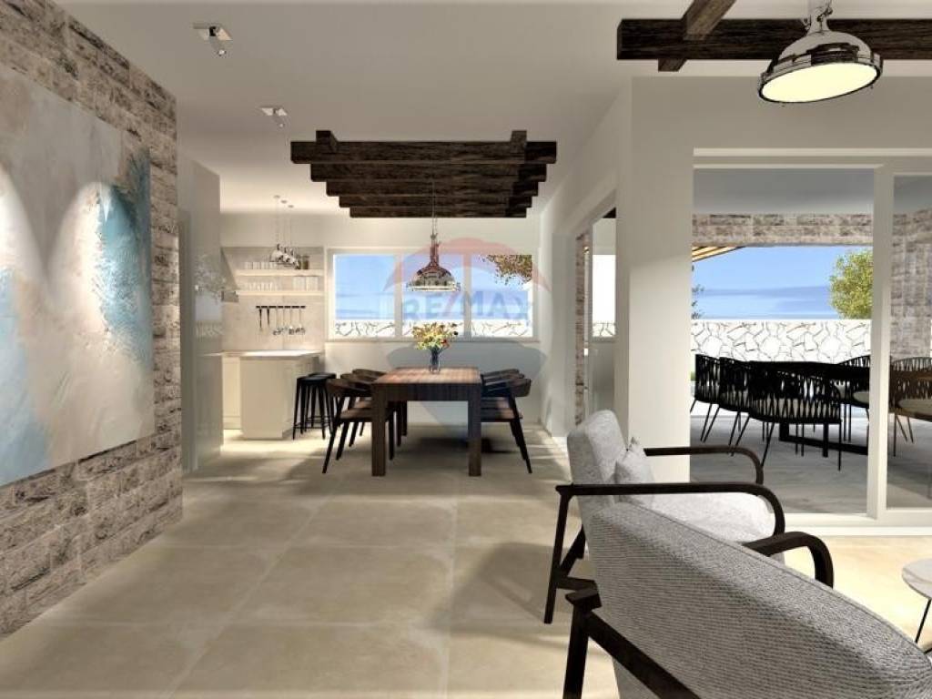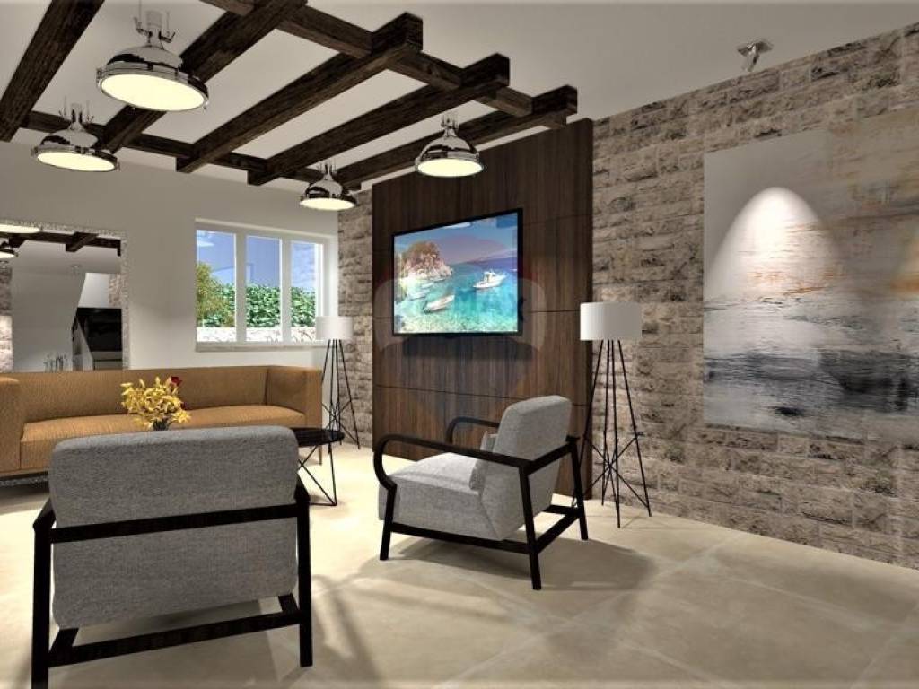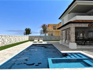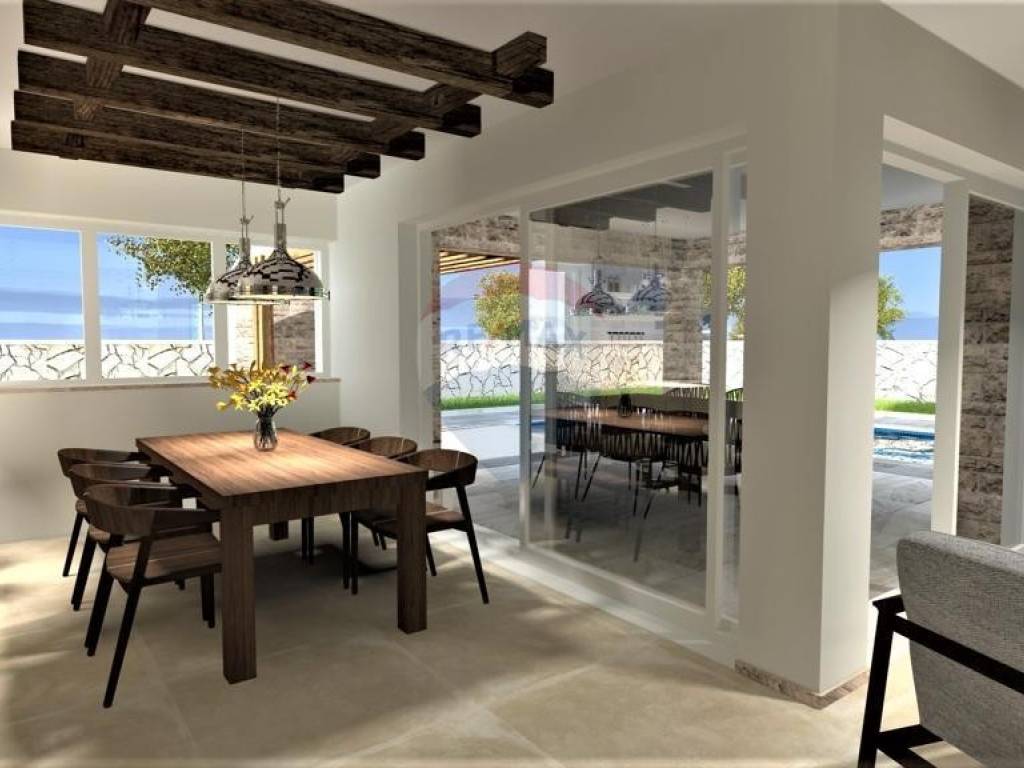 Moderna mediteranska vila, ukupne stambene površine 136 m2, nalazi se u mirnom dijelu okolice Vrbnika. Sastoji se od prizemlja i prvog kata. U prizemlju se nalaze kuhinja s blagavaonicom, dnevni boravak, toalet i utility, te velika natkrivena terasa. Na prvom katu smještene su soba sa vlastitom kupaonicom, te jos dvije sobe koje dijele jednu kupaonicu, te natkrivena prostrana terasa. Na lijepo uređenoj okućnici nalazi se bazen sa sunčalištem, konoba kao odvojena građevina, te parking za više vozila. Kvalitetna gradnja i oprema, klimatizirano, vrhunska keramika, pvc stolarija. Prodaje se nenamješteno. U mirnom dijelu okolice Vrbnika. Predviđeni završetak radova je 01.07.2023. Nekretnina idealna za život, kao i za turističko iznajmljivanje.