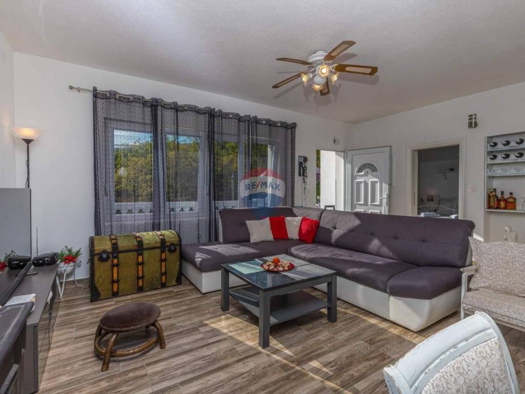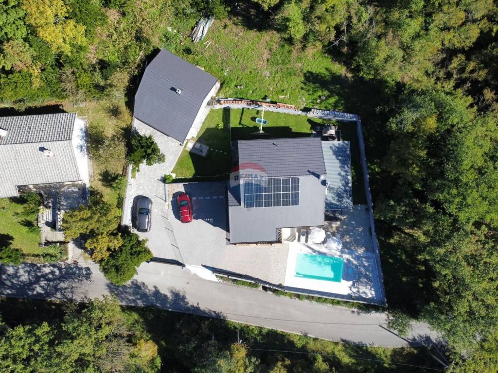 Na uređenoj okućnici od 760 m² nalazi se i pomoćna kuća površine 50 m², pogodna za goste ili dodatni smještaj za vlasnika, te pet parkirnih mjesta.