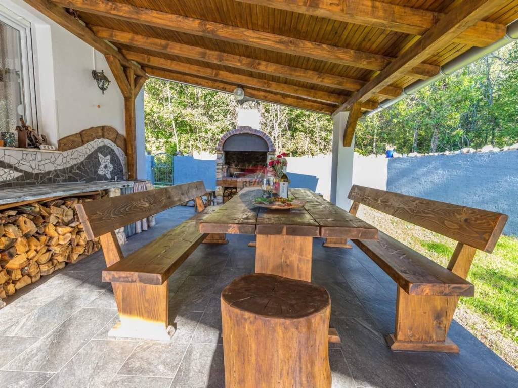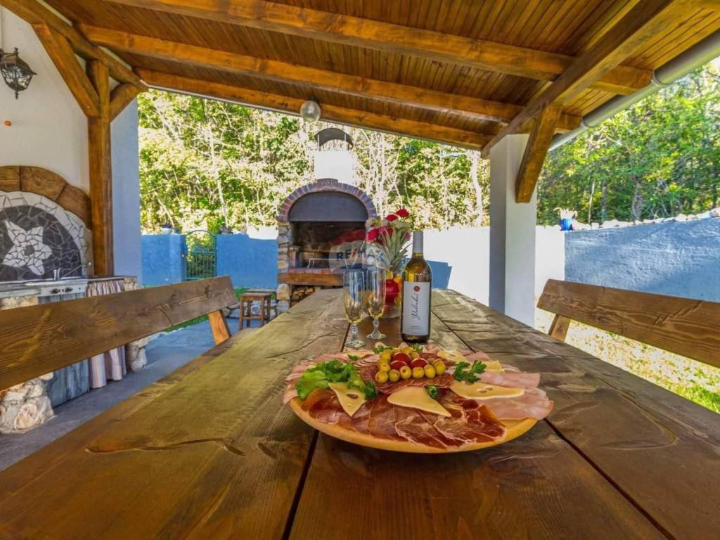 samostojeću vilu s dva moderno uređena apartmana i pomoćnom kućom, smještenu u mirnom i zelenilom okruženom dijelu Grižana, u zaleđu Crikvenice.
