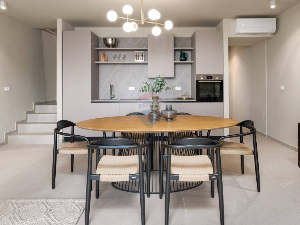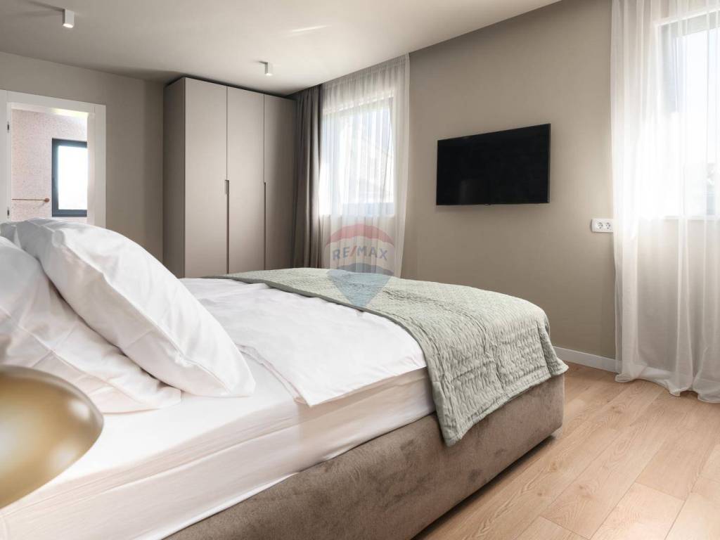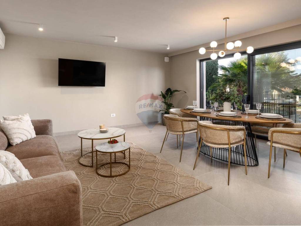 U Poreču, nadomak plaža i svih potrebnih sadržaja prodajemo ovu modernu novogradnju sa tri dvoetažne stambene jedinice. Kuća je smještena na pomno uređenoj i prostranoj okućnici od 1378 m2 na kojoj se smjestilo sunčalište sa grijanim bazenom te vanjska kuhinja. Uz to, nalazi se i 8 parkirališnih mjesta te punjač za električne automobile. U prizemlju svake od tri stambene jedinice nalazimo kuhinju sa blagovaonom i dnevnim boravkom u open-space konceptu, ostavu i jednu spavaću sobu. Na katu se nalaze po dvije spavaće sobe sa vlastitim kupaonicama i terasom sa koje se pruža pogled na more. Kuća je namještena pažljivo biranim elegantnim namještajem, Grohe i Catalano sanitarijama te je opremljena video nadzorom.